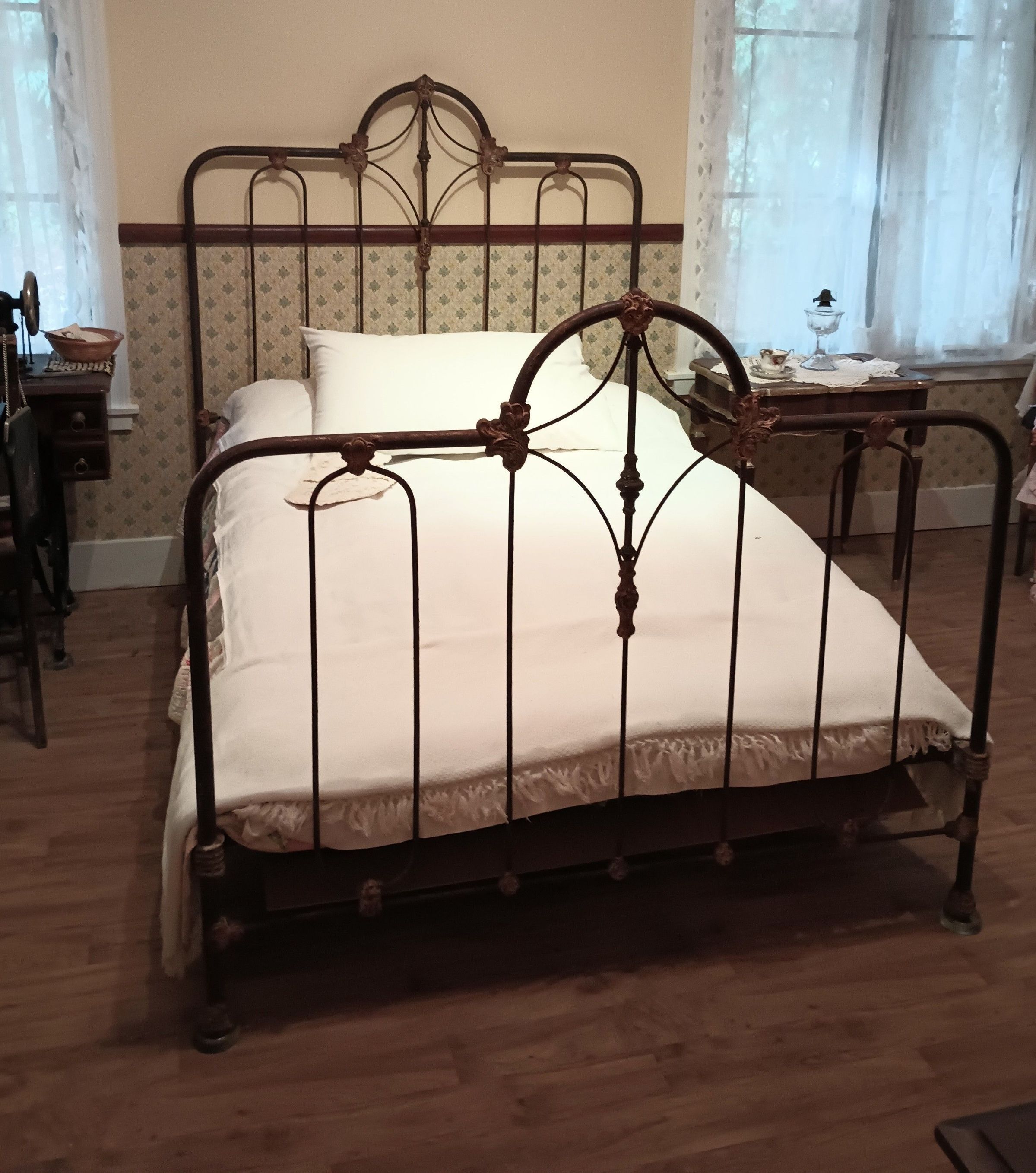 Wrought iron bed frame.