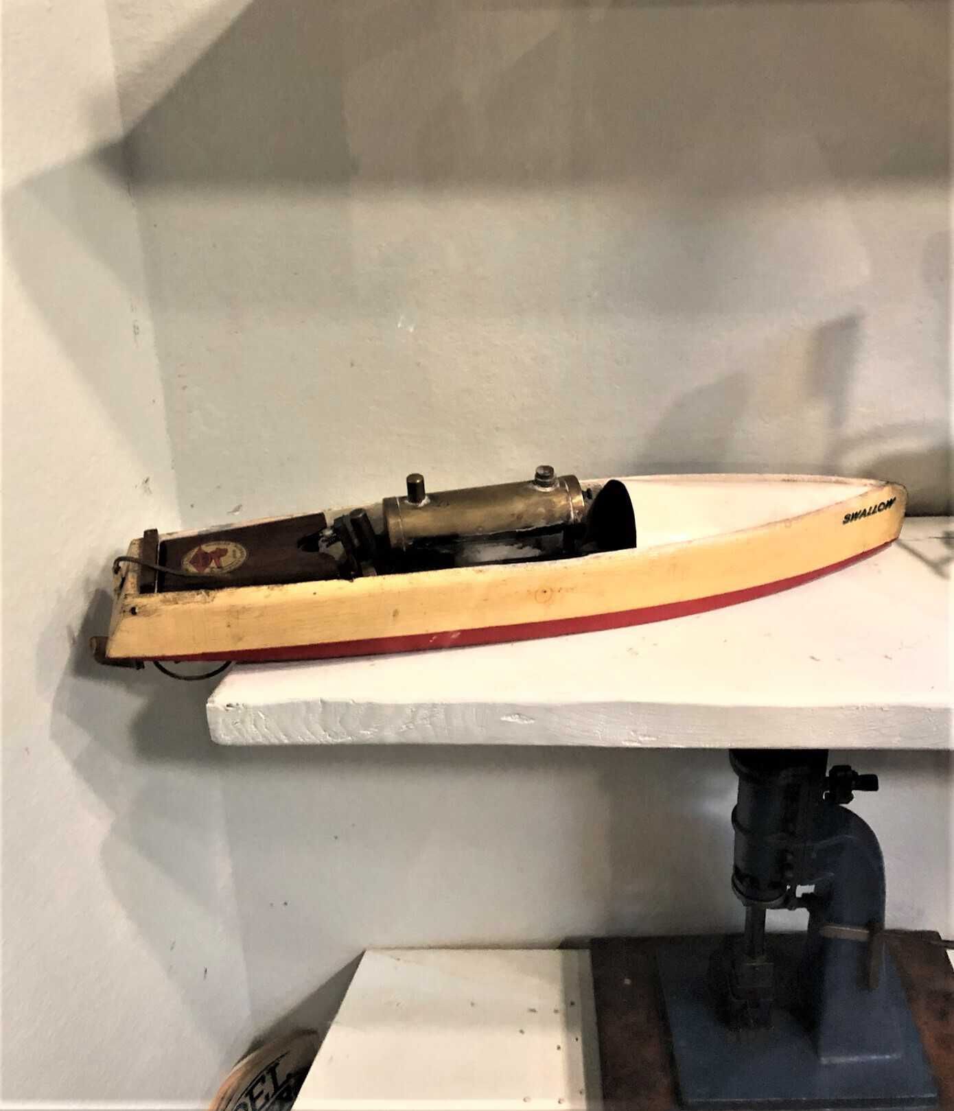Roman Swallow model steam speed boat. The Swallow (1930) was (along with the Snipe, launched at the same time), one of the most popular of the second wave of Bowman Models' live steam boats, as judged from the number of times it appeared in advertising from 1931 onwards.