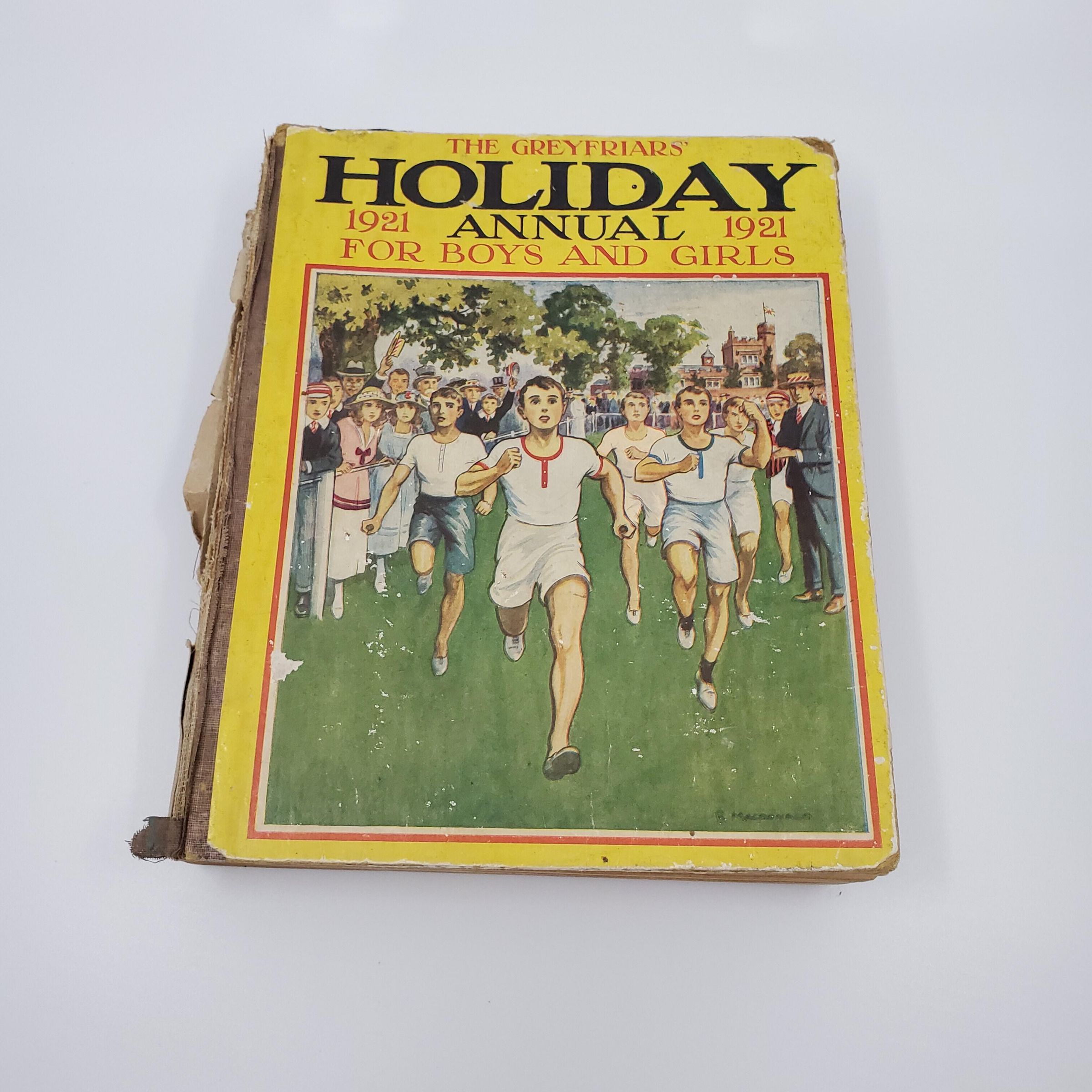 The Greyfriars' Holiday Annual 1921 for Boys and Girls was published by the Amalgamated Press in September 1920, in time for the Christmas market. It cost 6 shillings, had 360 pages, with a cover by R. J. Macdonald.