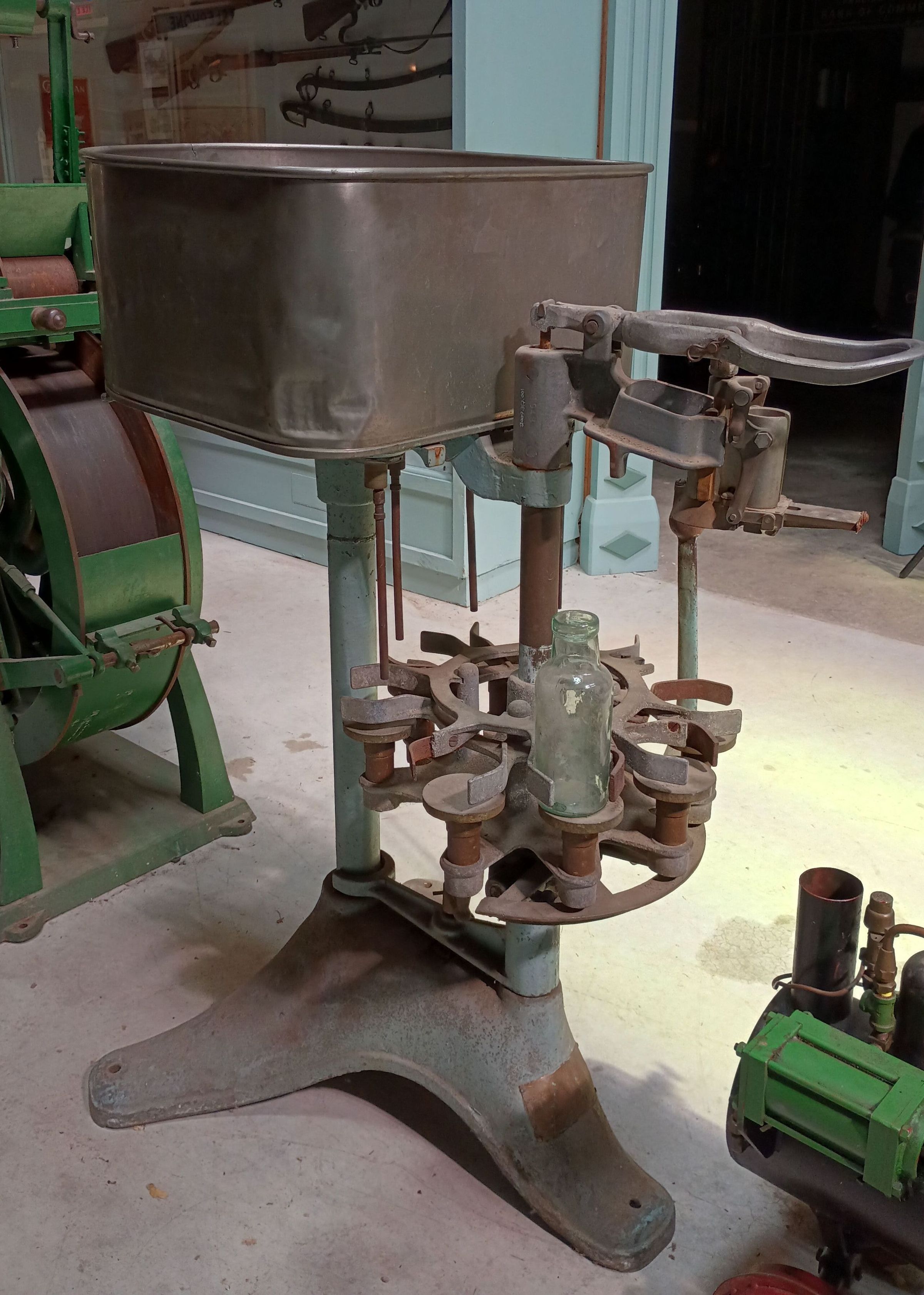 Upright bottle filling and capping machine with metal tub and rotary tray for bottles. Product of Cherry Burrell Company.Mikwaukee. Model B Serial number 3323.Use