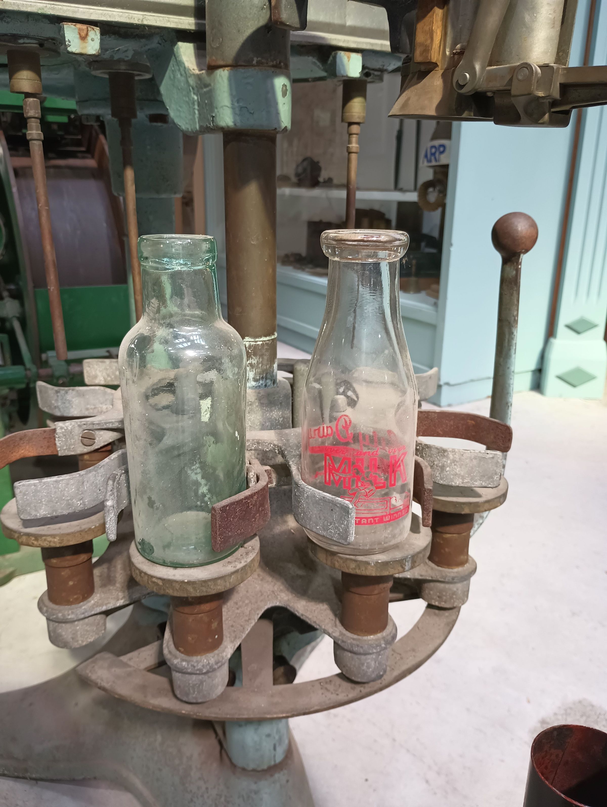 The machine was used to bottle and cap quart and pint bottles of milk and milk products.