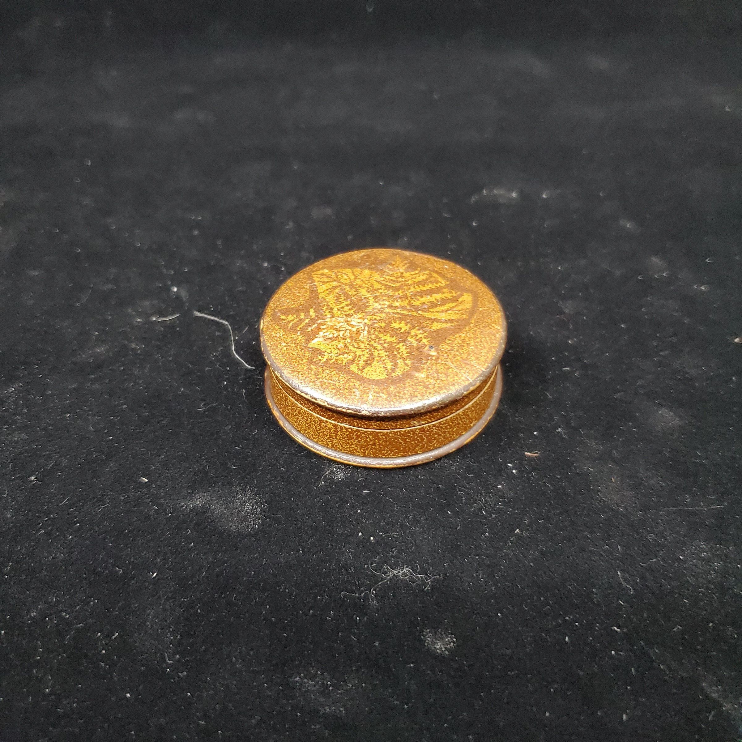 Round Transfer Ware box. Fern Ware - fern decoration on top and bottom of box.