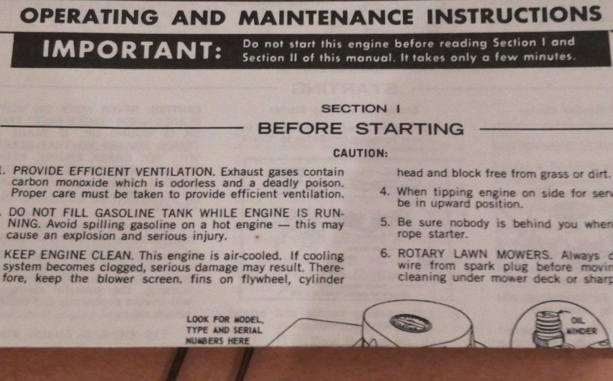 Briggs and Stratton. Operating and maintenance instructions. Model series 60900 - 60906, 61900 - 61906, 80900 - 80996, 81900 - 81996.