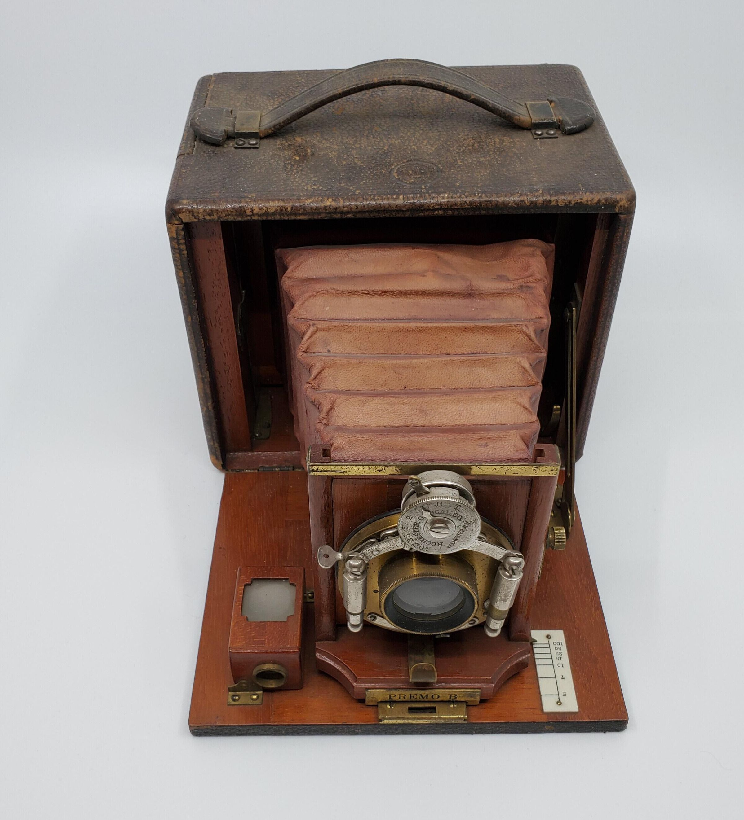 Pony Premo B No. 1 camera, with wooden tripod, Film Plate Glass, Manufactured in 1897 by Rochester Optical Co Rochester N.Y., SN48897
