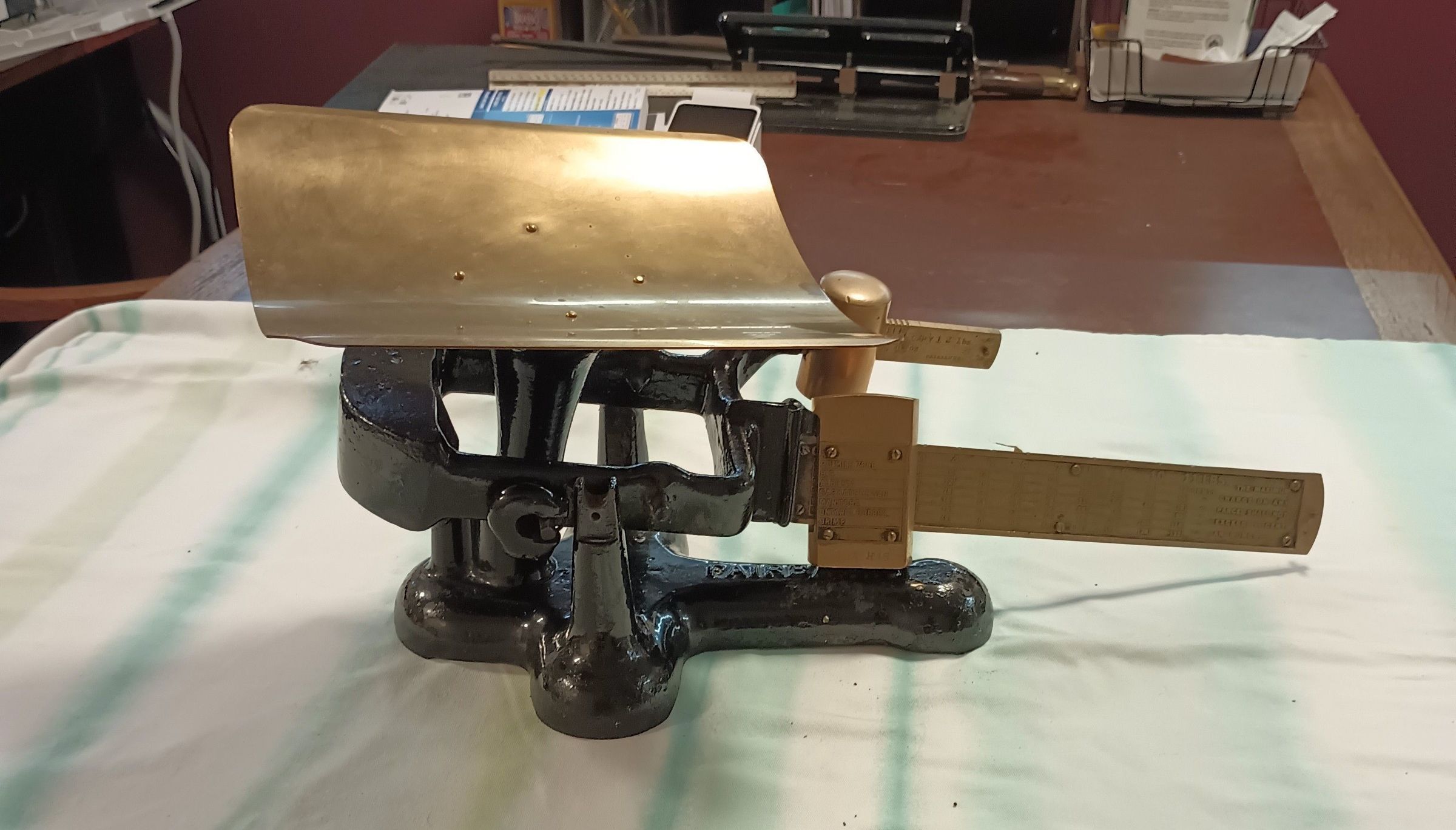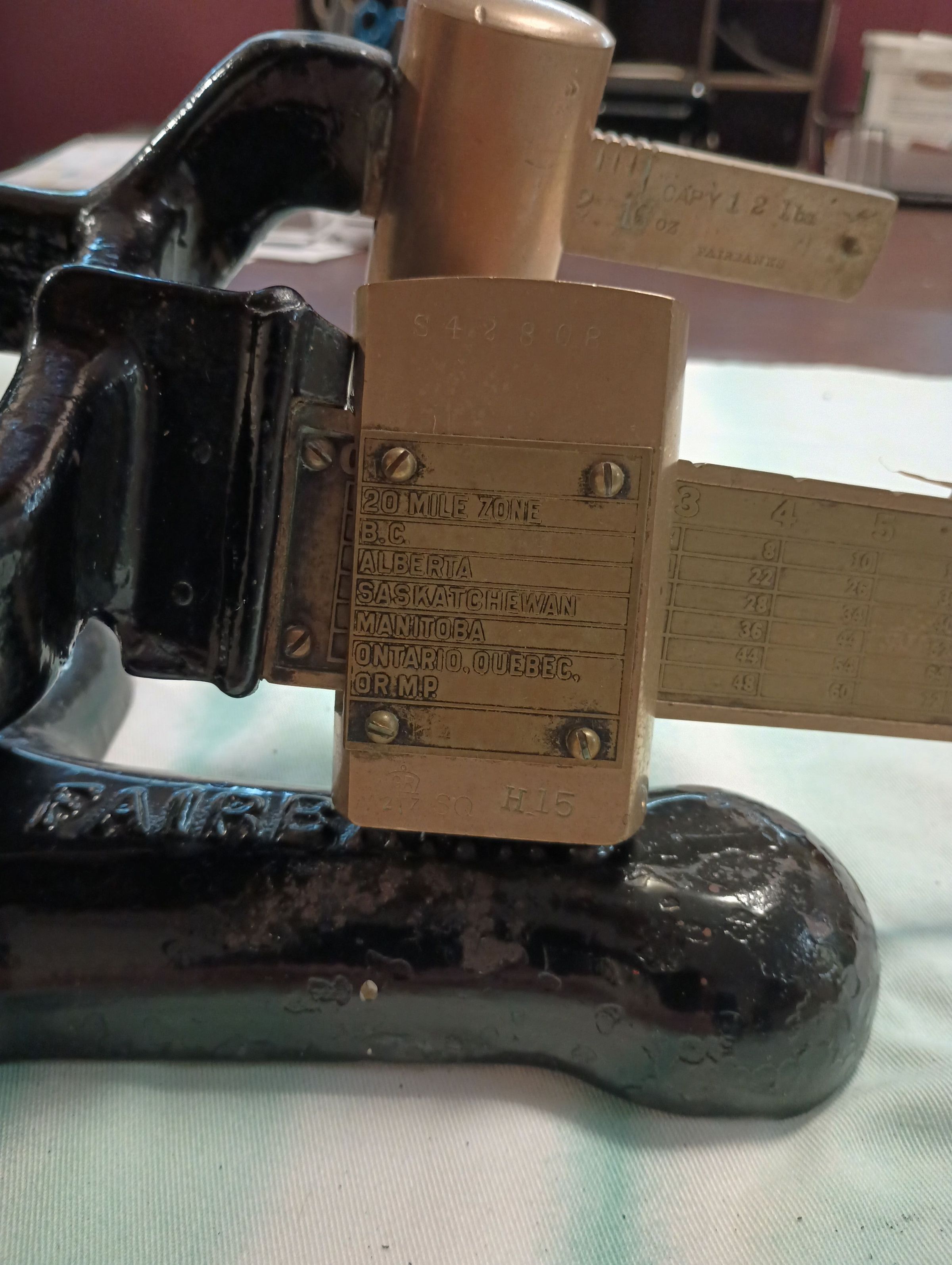 Canadian postal scale with black cast iron base, and metal cradle and gauge.Circa 1930-40