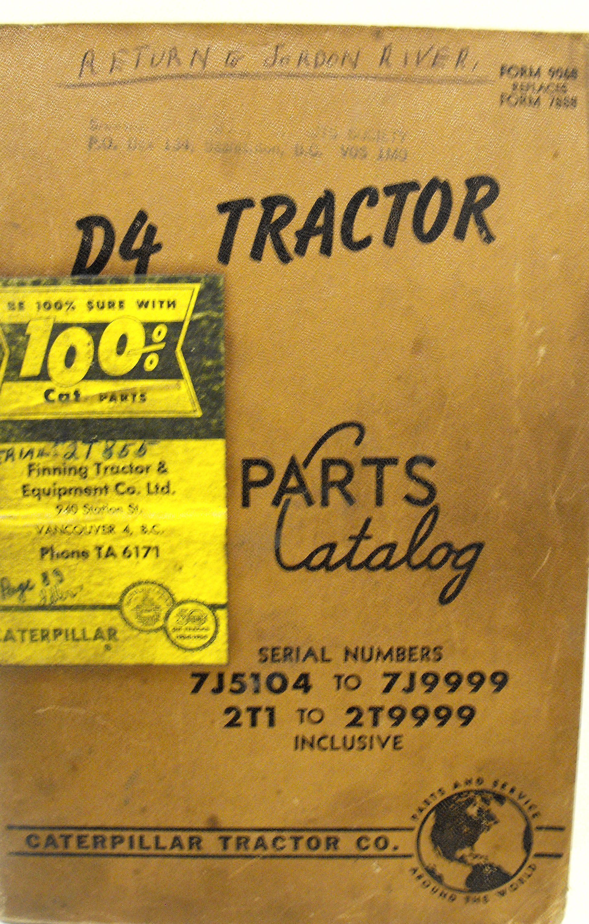 Catapillar. D4 tractor parts catalog. Serial numbers 7J5104 to 7J9999, 2T1 to 2T9999 inclusive