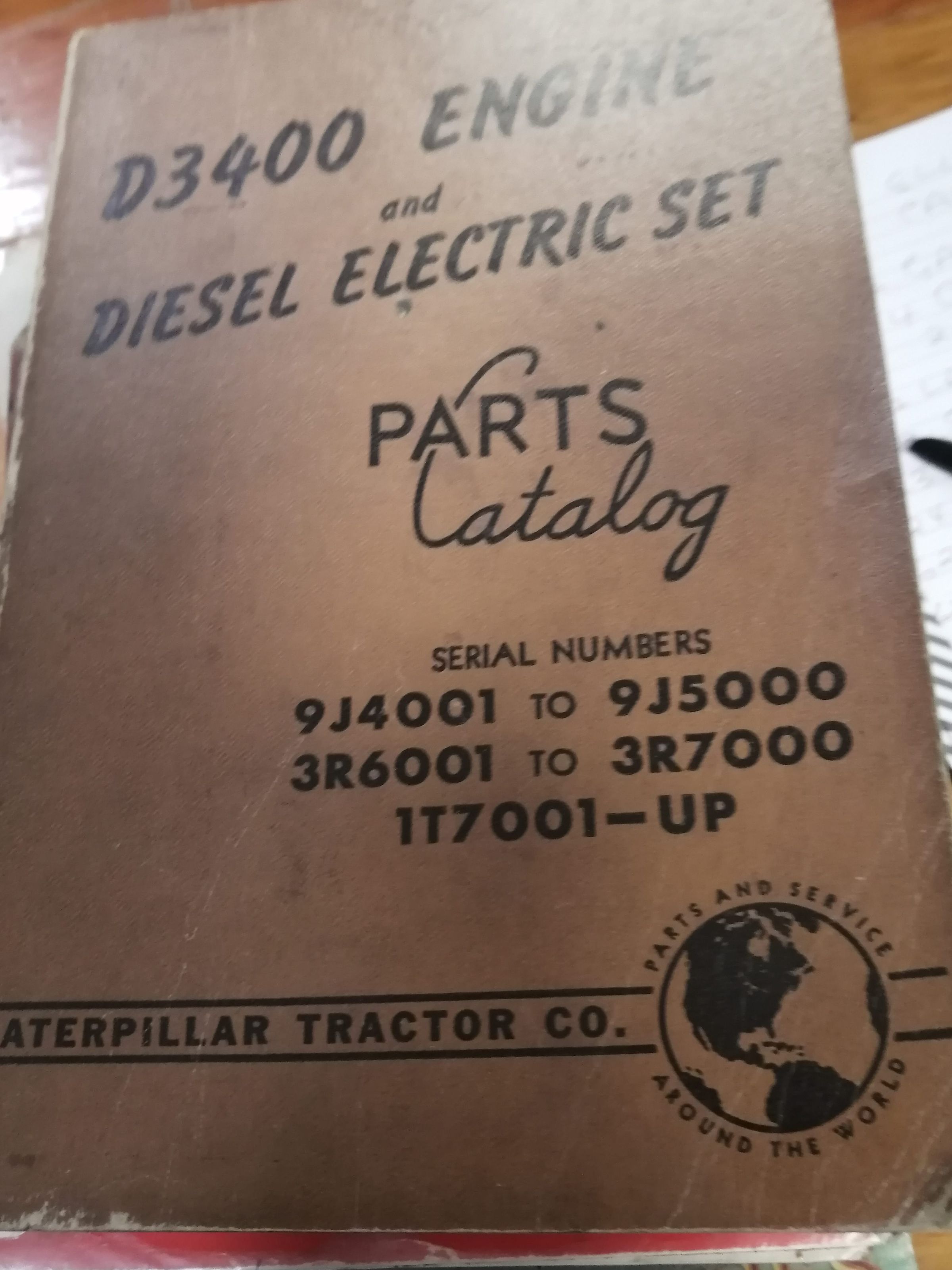 Caterpillar. D3400 engine and diesel electric set parts catalog. Serial numbers 9J4001 to 9J5000, 3R6001 to 3R7000, 117001 - up