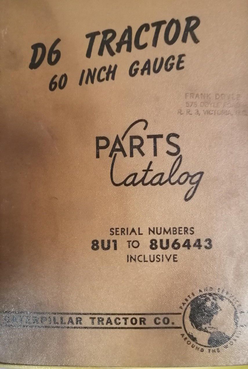 Caterpillar. D6 tractor. 60 inch gauge. Parts Catalog. Serial numbers 8U1 to 8U6443 inclusive