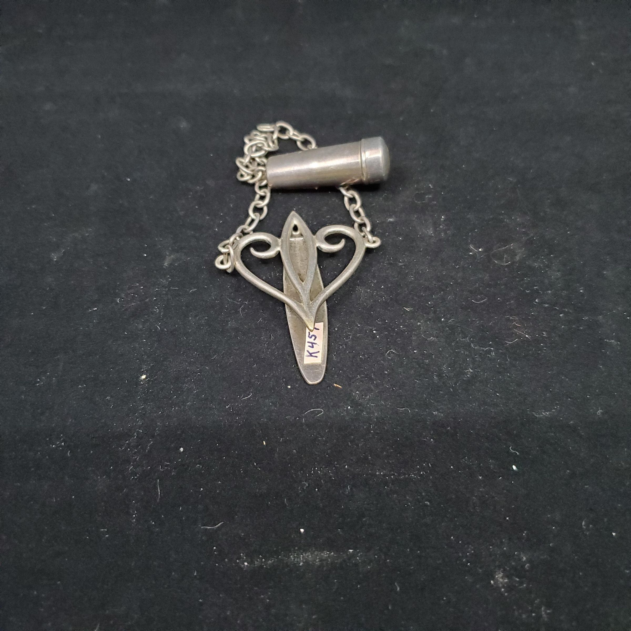 Single sterling silver belt chatelaine with clip and small case at end of chain.English hallmarks on both pieces. Clip - Birmingham 1901. Case - small - Birmingham 1911 and initial T or J HV for maker.