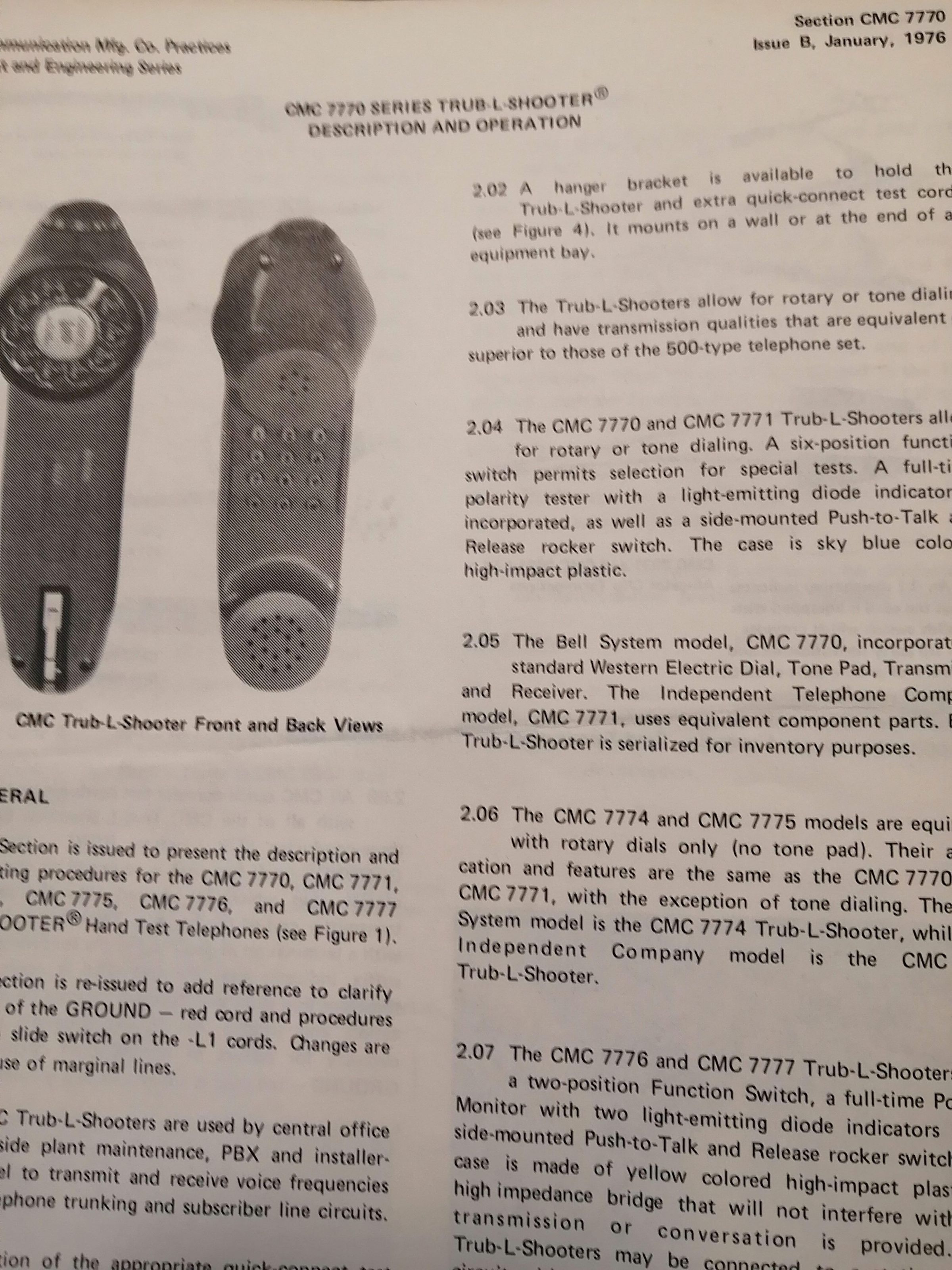 CMC 7770 series Trub-L-Shooter. Description and operation