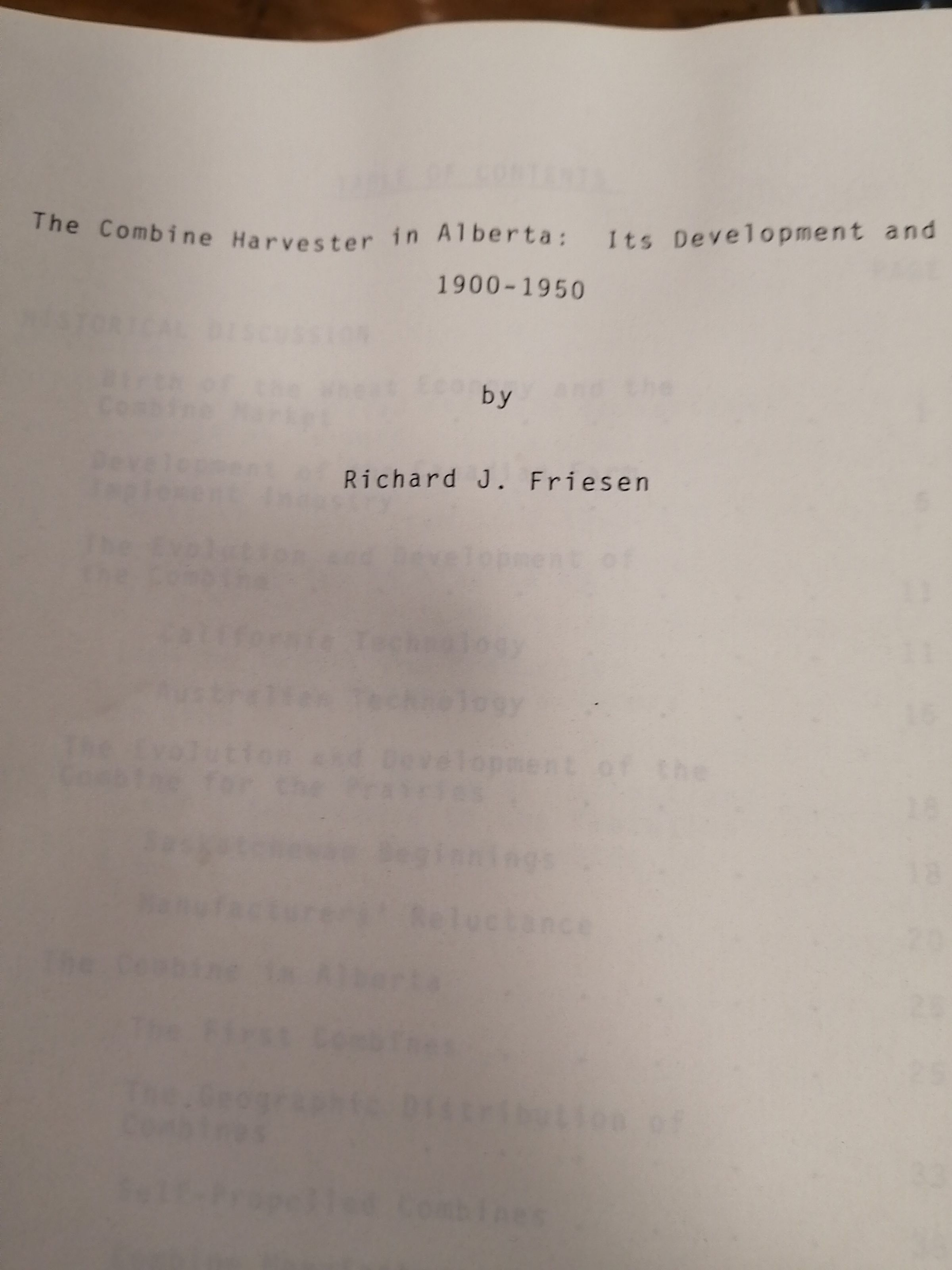 Combine harvester in Alberta. Its development and use. 1900-1950