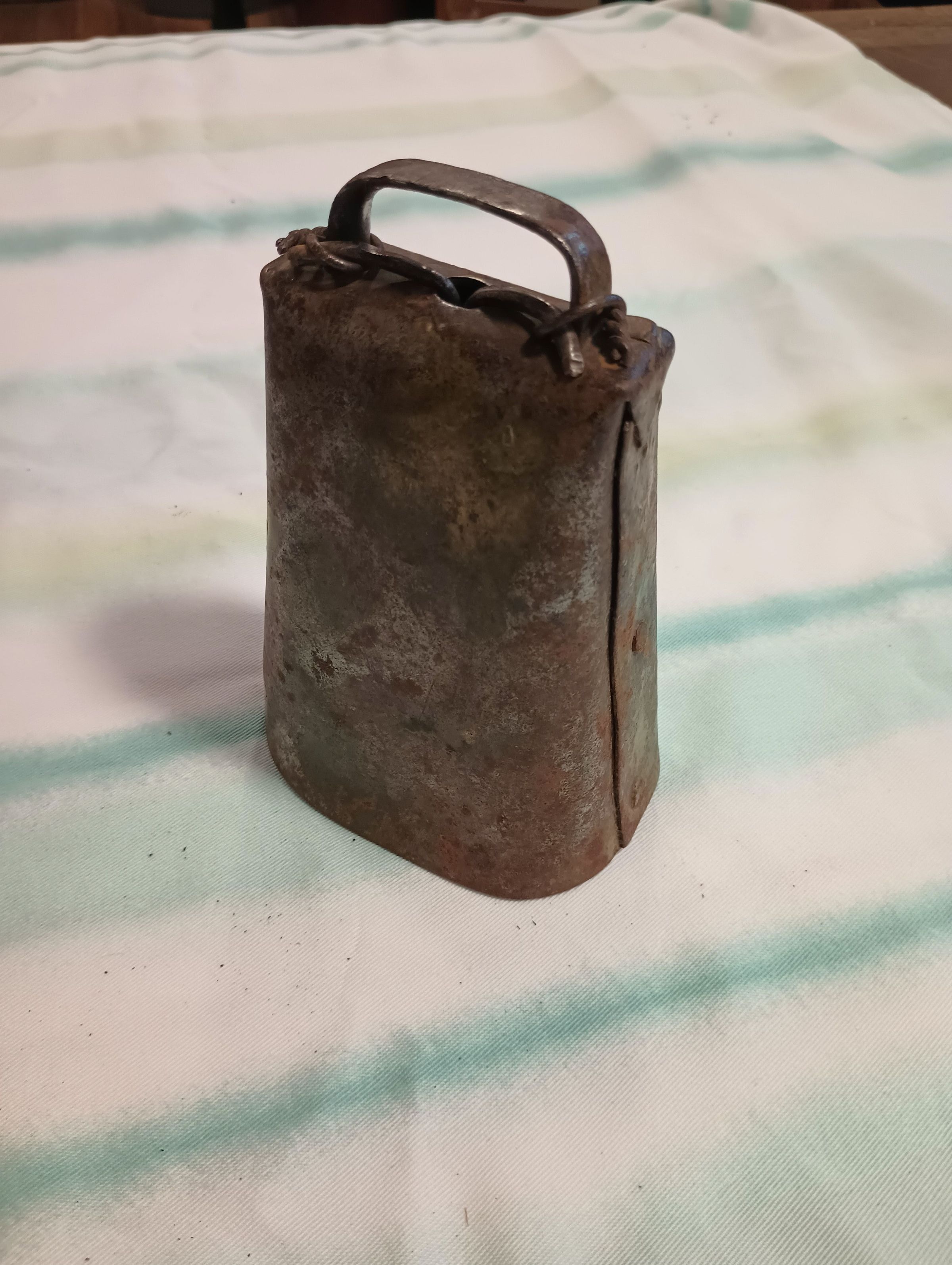 Metal cowbell, weathered metal.