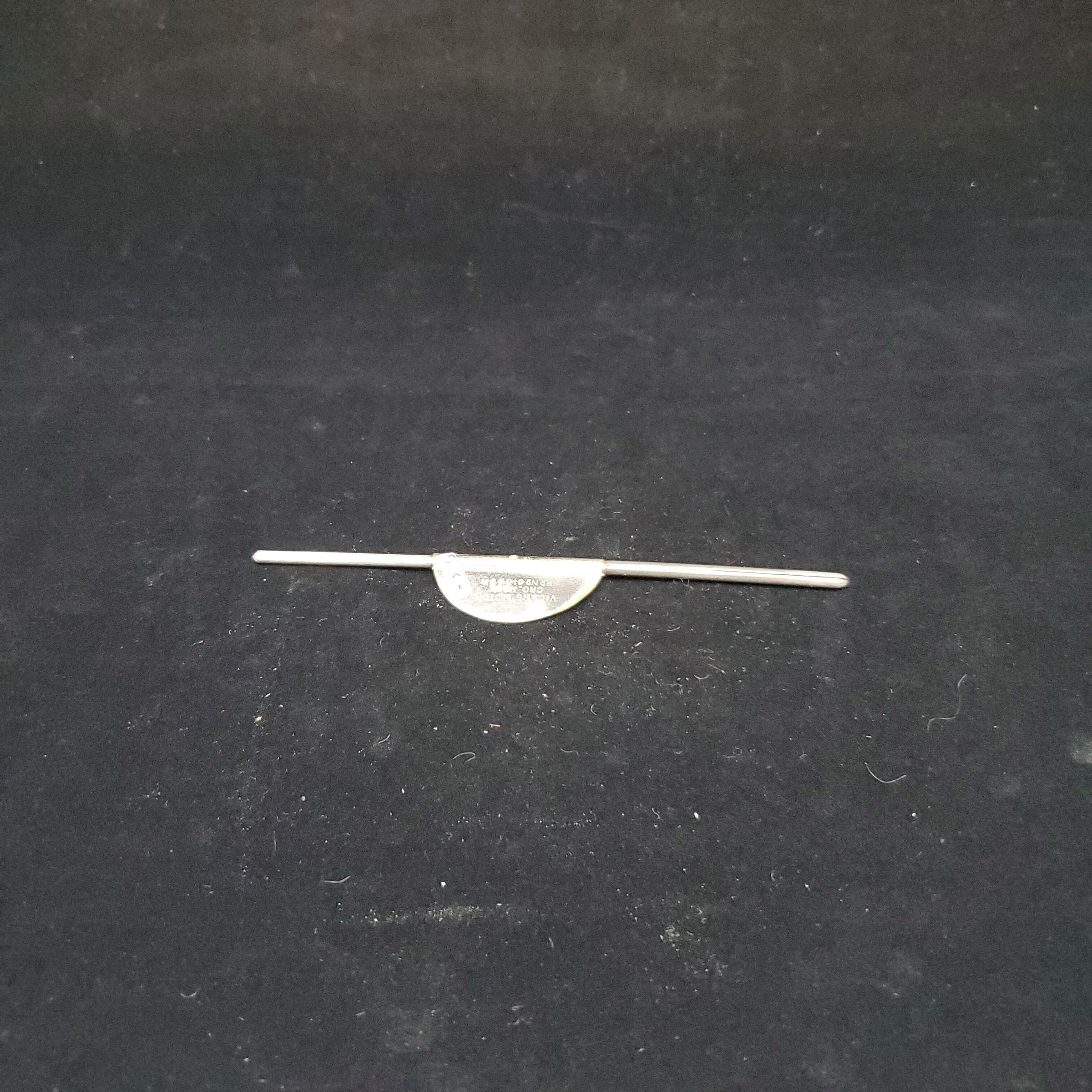 Advertising steel crochet hook with cover for hook end. Handle has semi-circular piece with advertising on it. Advertising ÒVicars Motor Cro. Hook Rd 610259Ó