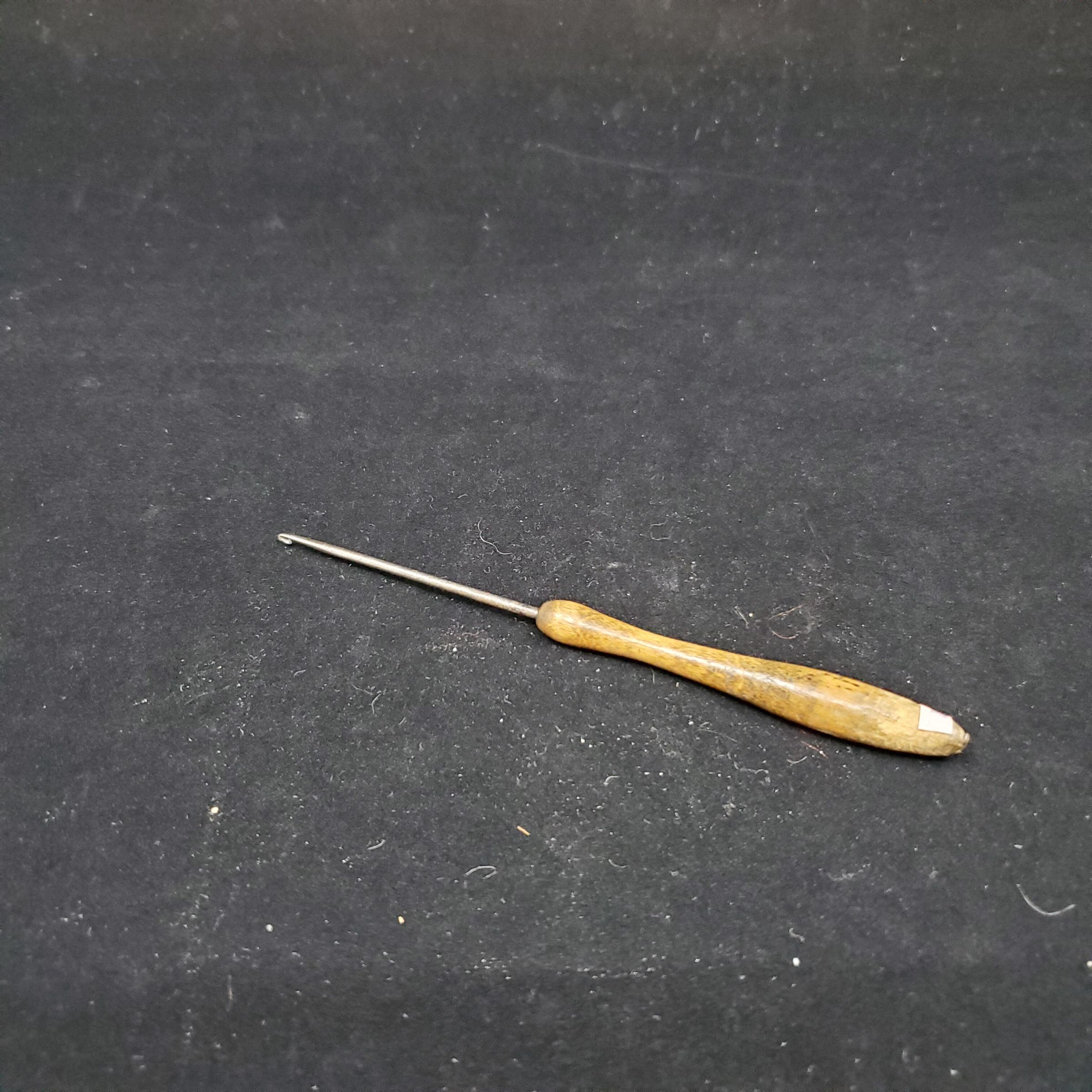 Wooden handled crochet hook. Hook - steeel. Handles dark brown to light brown in colour.