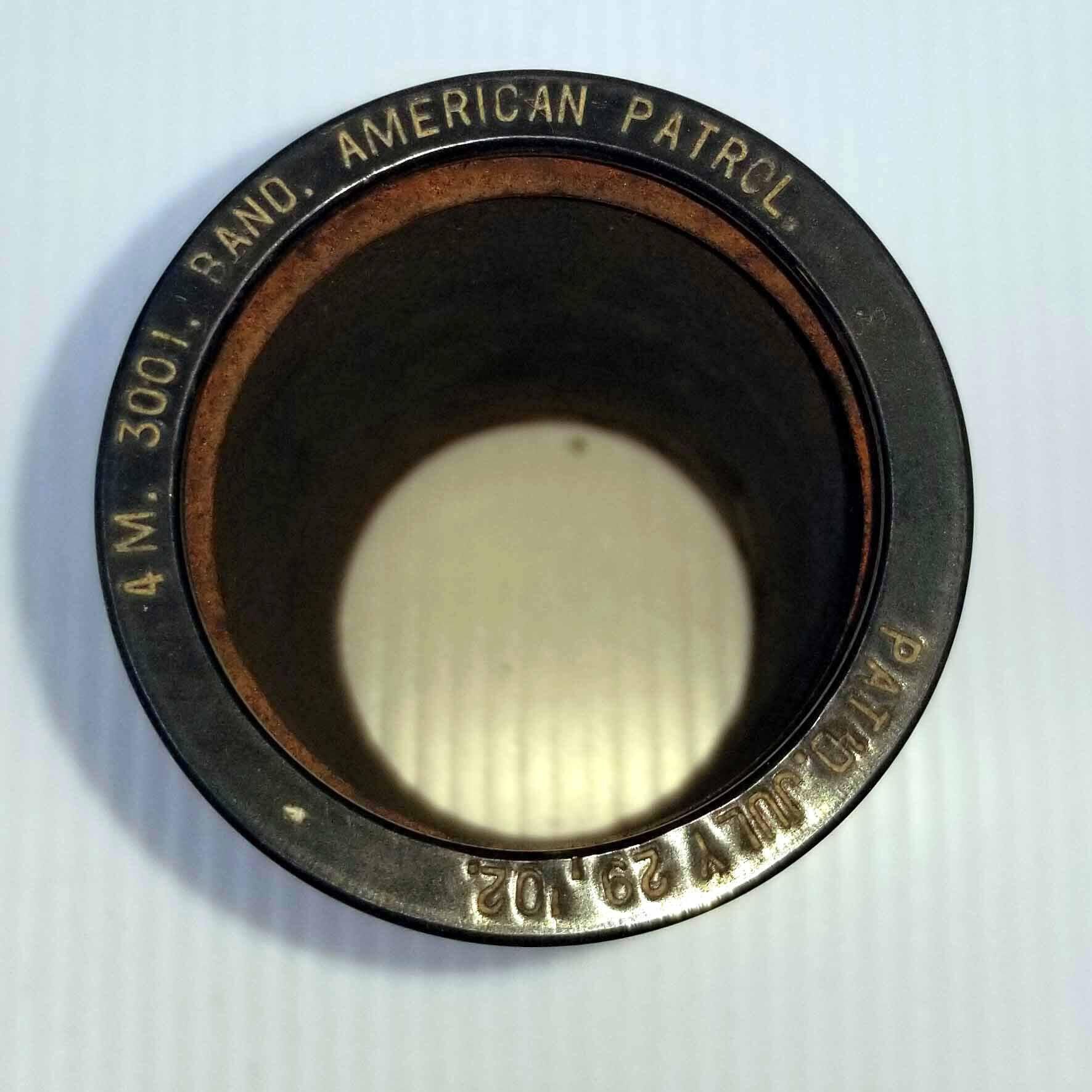 Cylinder Record, Bakelite - American Patrol - Indestructible Band - 1910 - Indestructible 4m 3001 - ClassicalEntry/Object ID