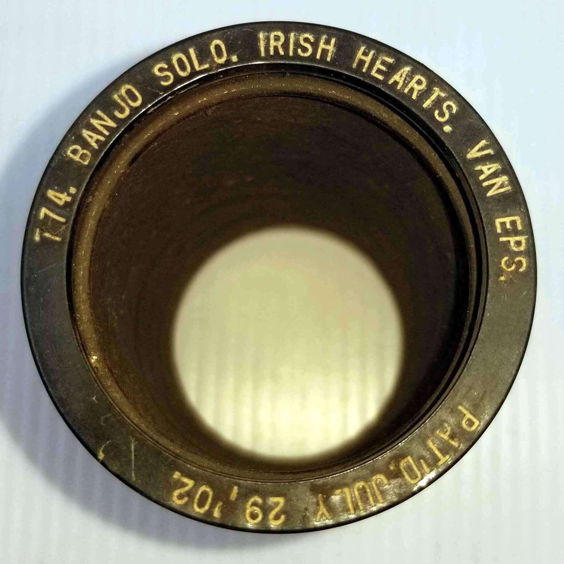 Cylinder Record, Bakelite - Irish Hearts - Fred van Eps - 1908 - Indestructible 774 - Folk
