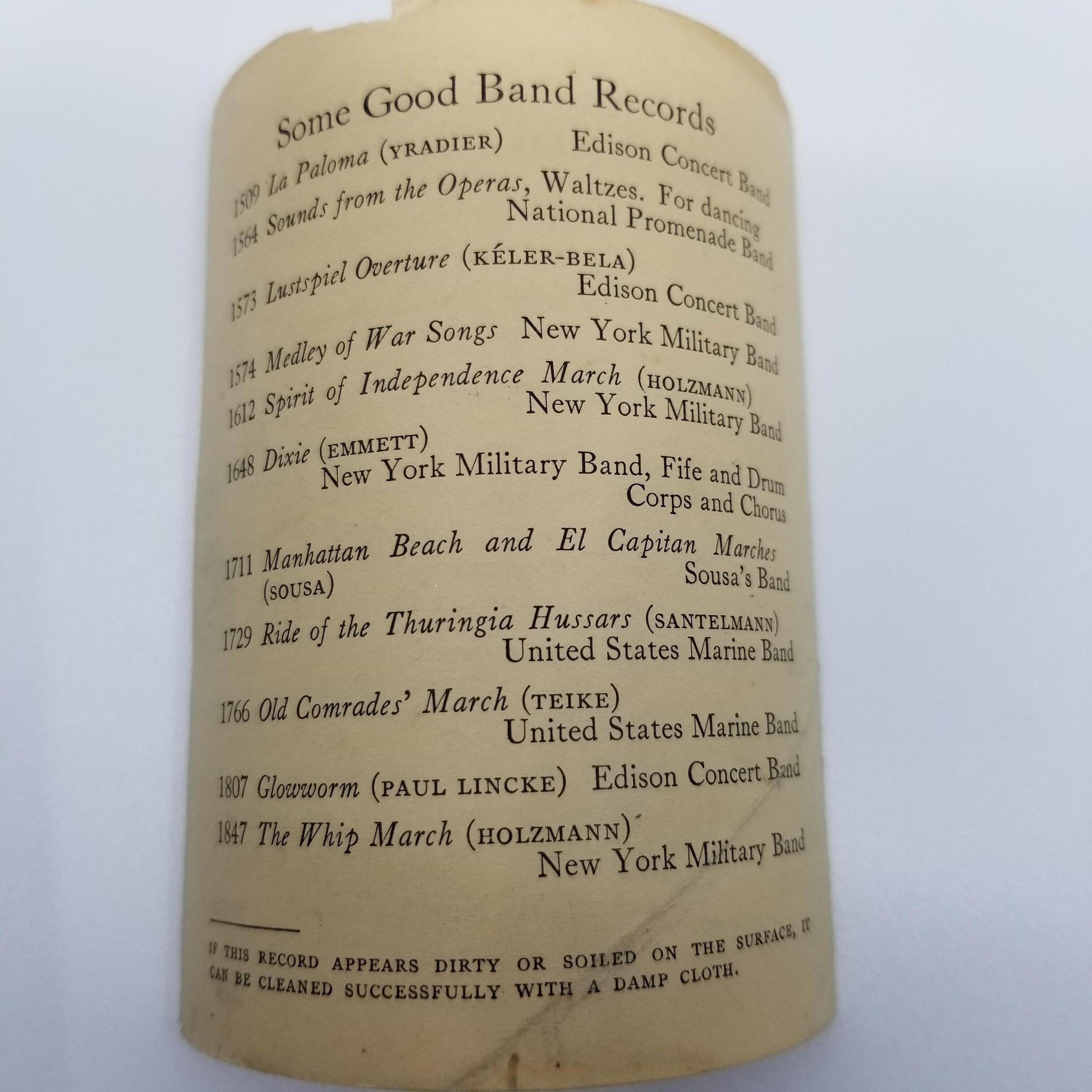 Cylinder Record, Bakelite - Officer of the Day and Hurricane Two-Steps - Edison Band - 1913 - Edison 1895 - Senkler Estate CollectionDescription