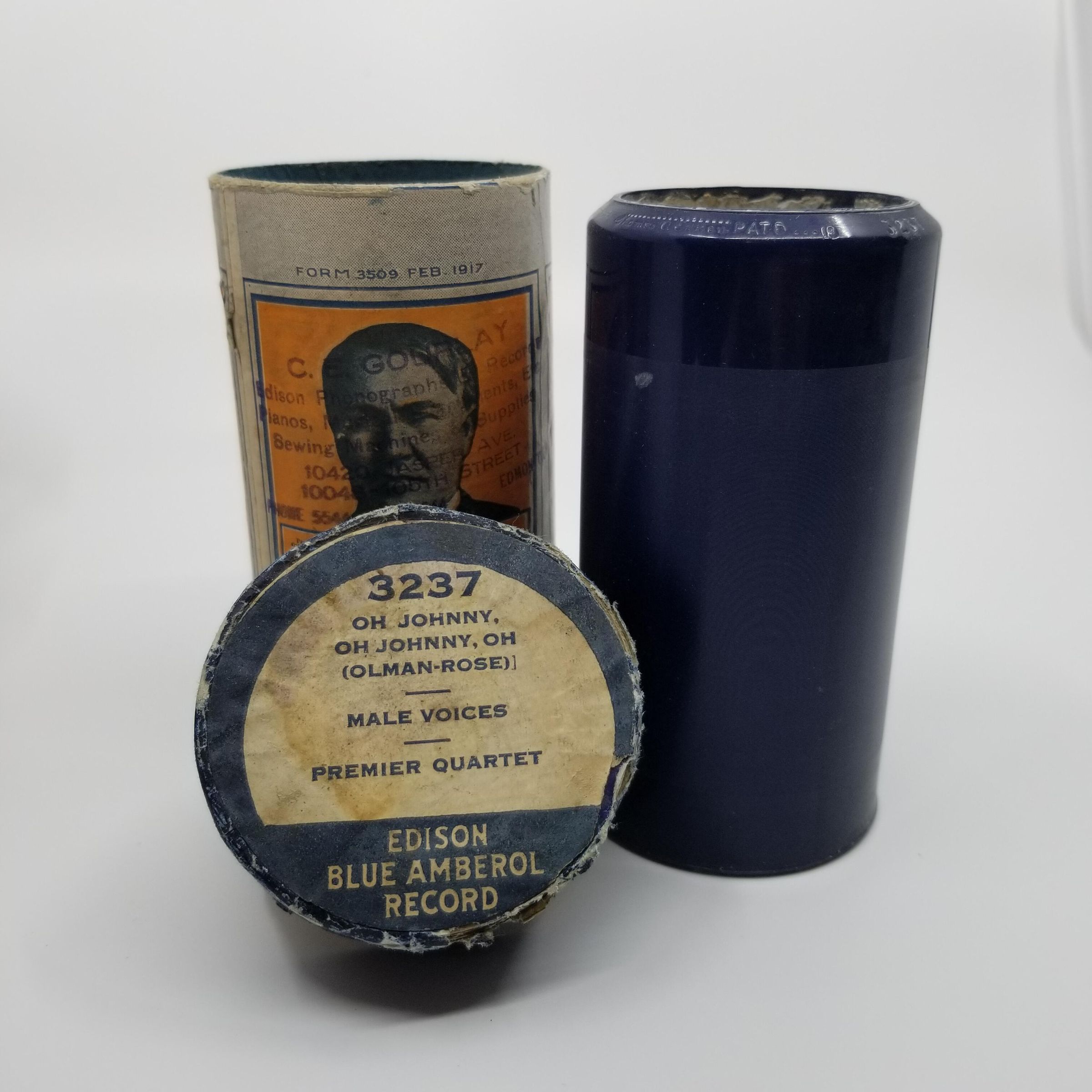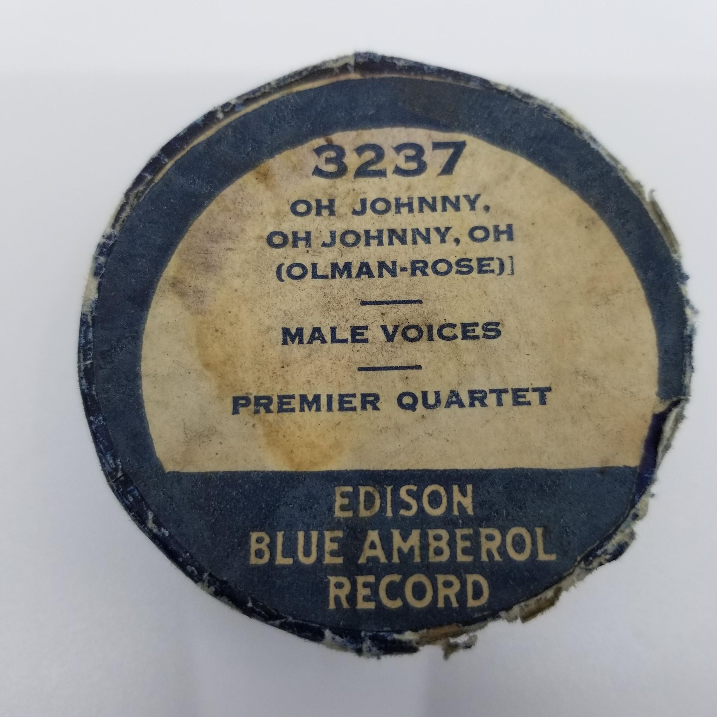 Cylinder Record, Bakelite - Oh Johnny, Oh Johnny, Oh (Olman-Rose) - Edison Premier Quartette - 1917 - Edison 3237 - Senkler Estate CollectionDescription
