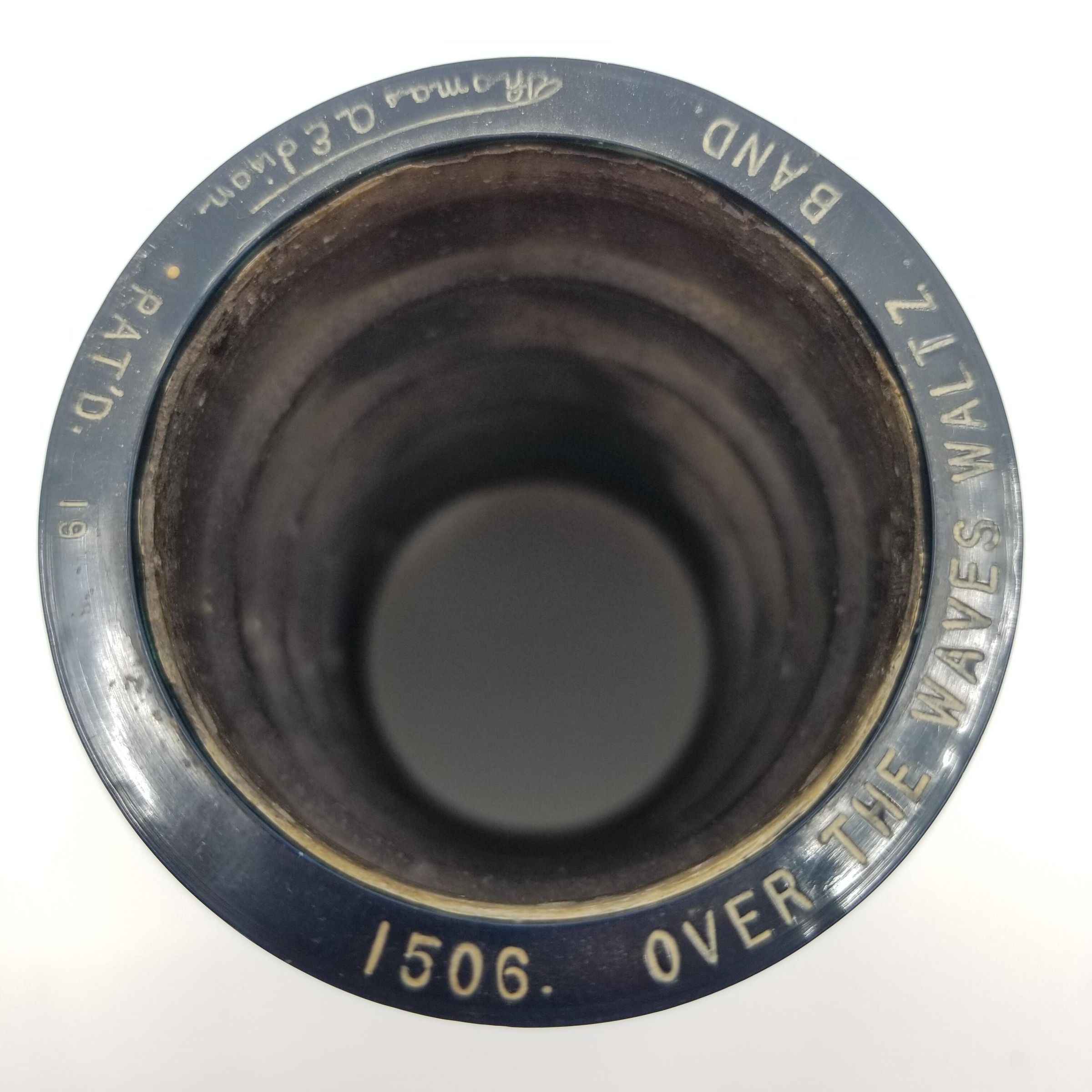 Cylinder Record, Bakelite - Over The Waves (Waltz) - Edison Band - 1912 - Edison 1506 - Senkler Estate CollectionDescription