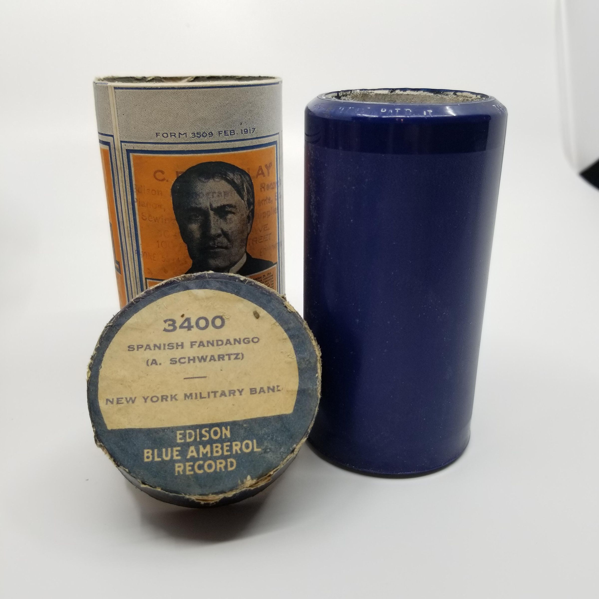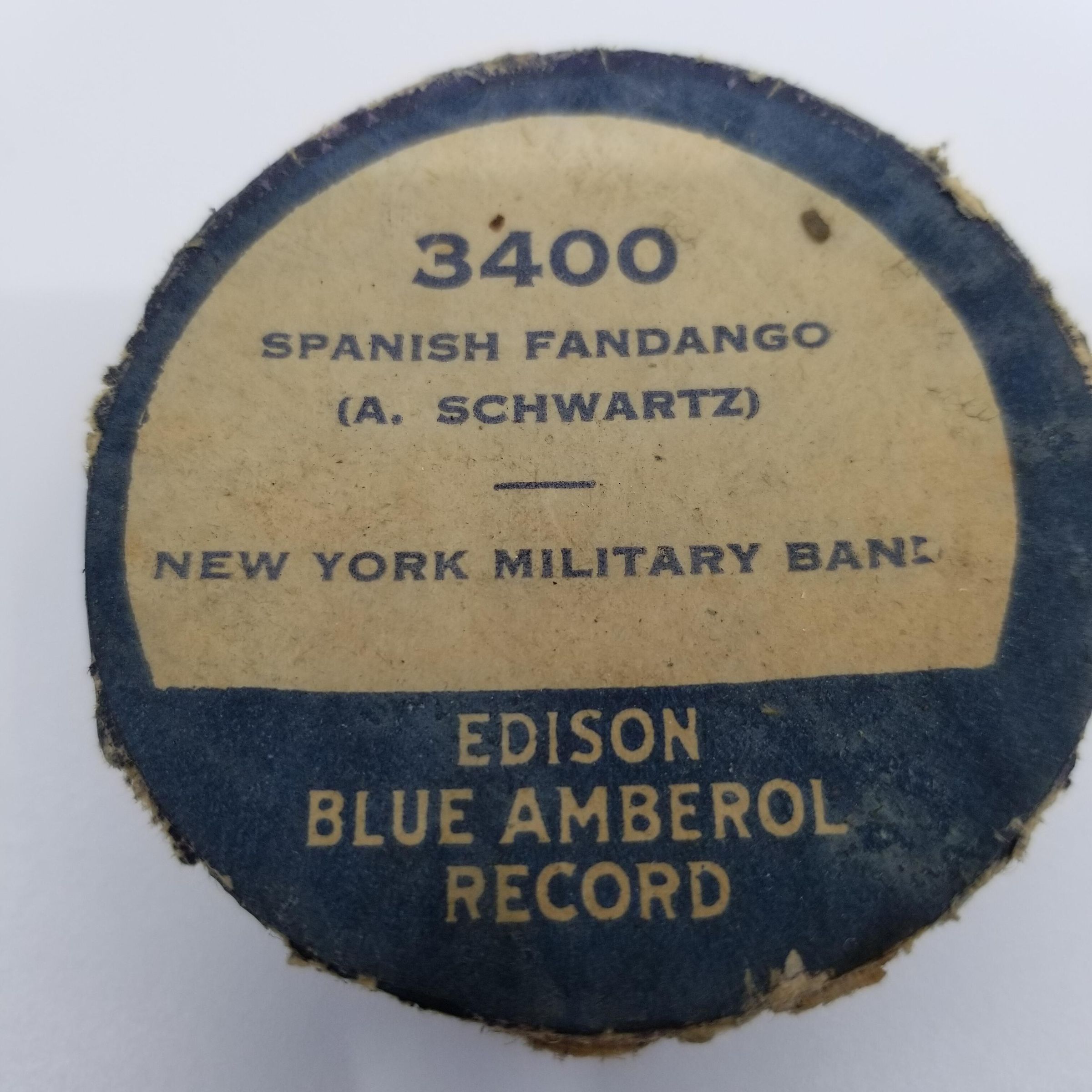Cylinder Record, Bakelite - Spanish Fandango (A. Schwartz) - New York Military Band - 1918 - Edison 3400 - Senkler Estate CollectionDescription