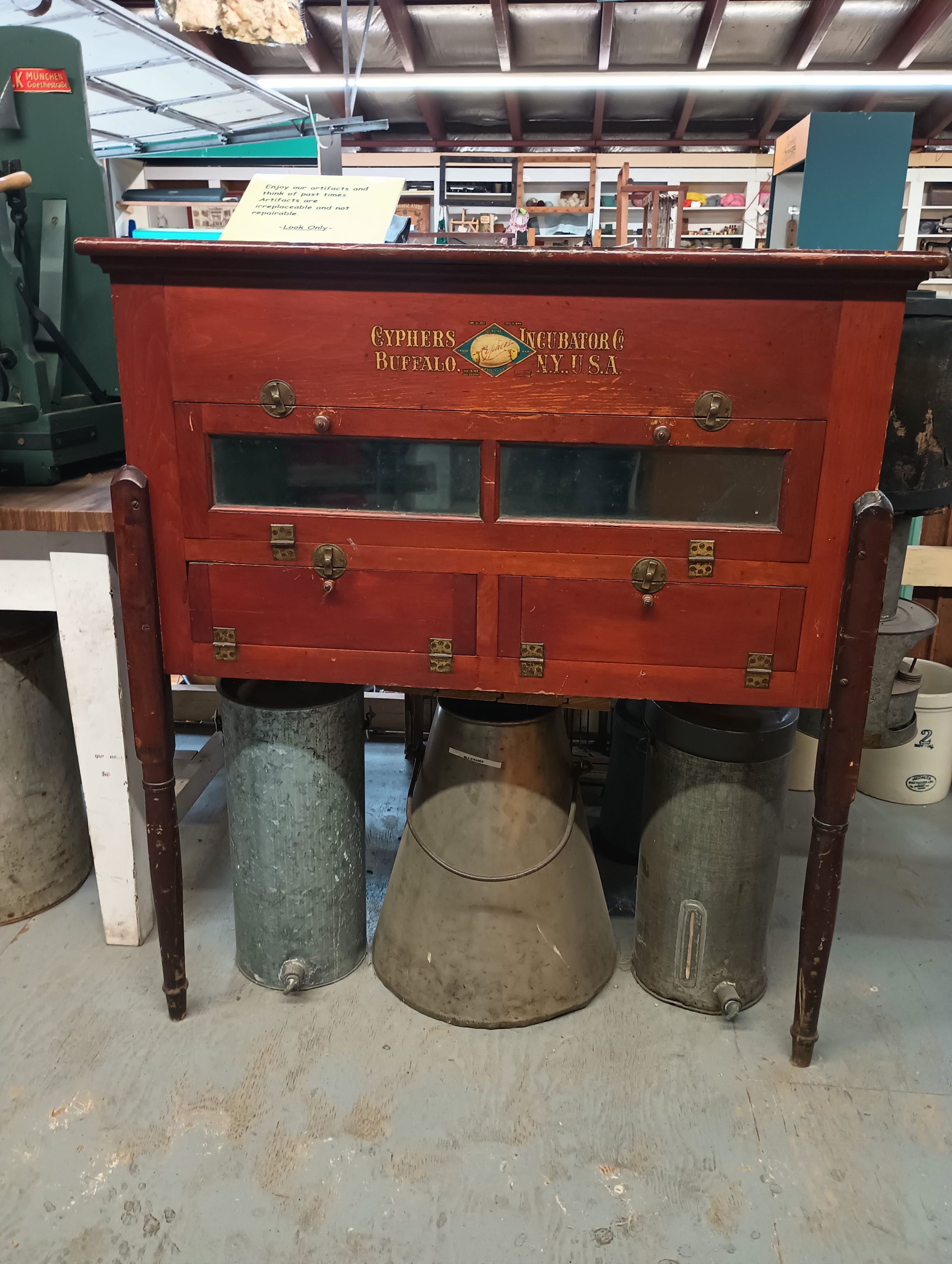 Large wooden cabinet egg incubator manufactured by Cyphers Incubator Company, Buffalo New York.Use