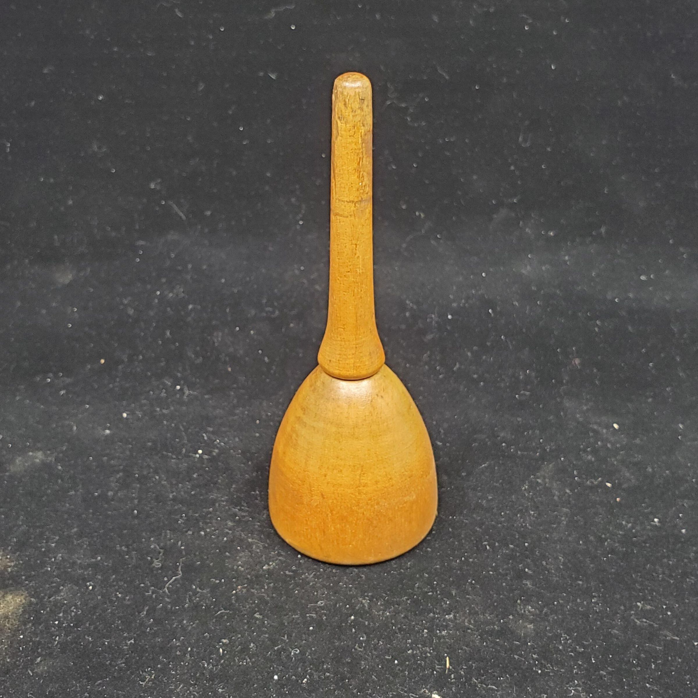 Wooden darner Indented top. Top removeable, with hole in stem for needles. Light tan coloured wood
