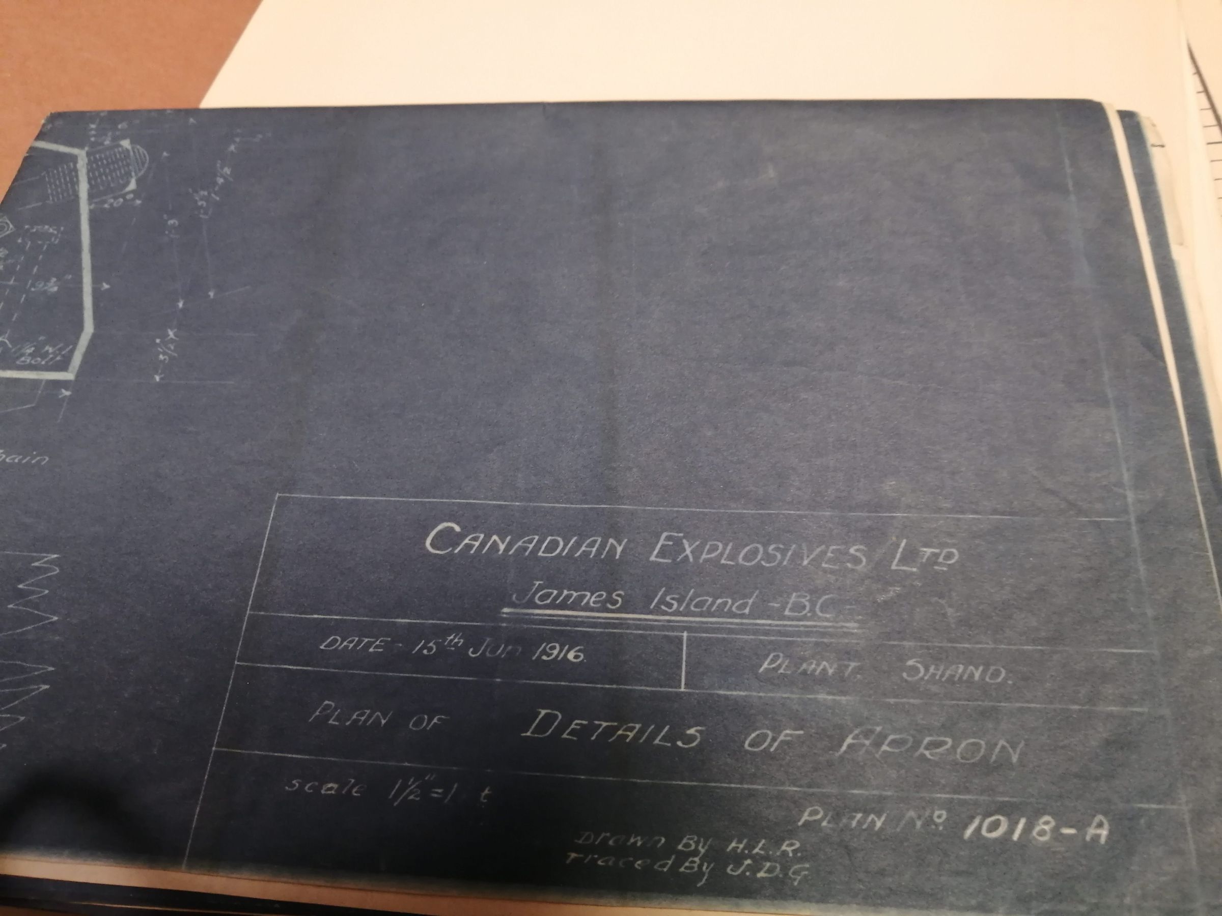 Details of apron. James Island, B.C. Technical drawing