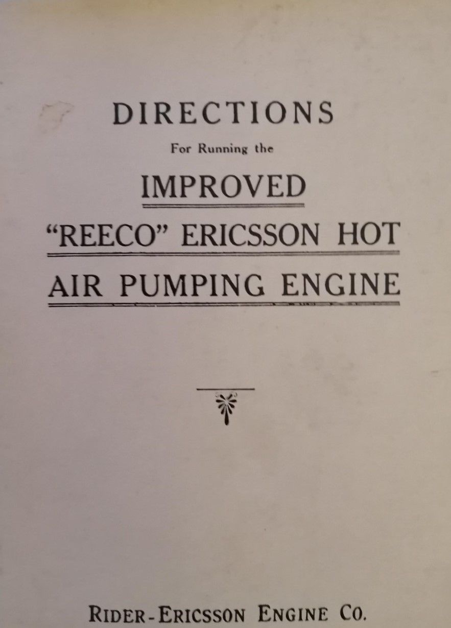 Directions for running the improved "Reeco" Ericsson hot air pumping engine