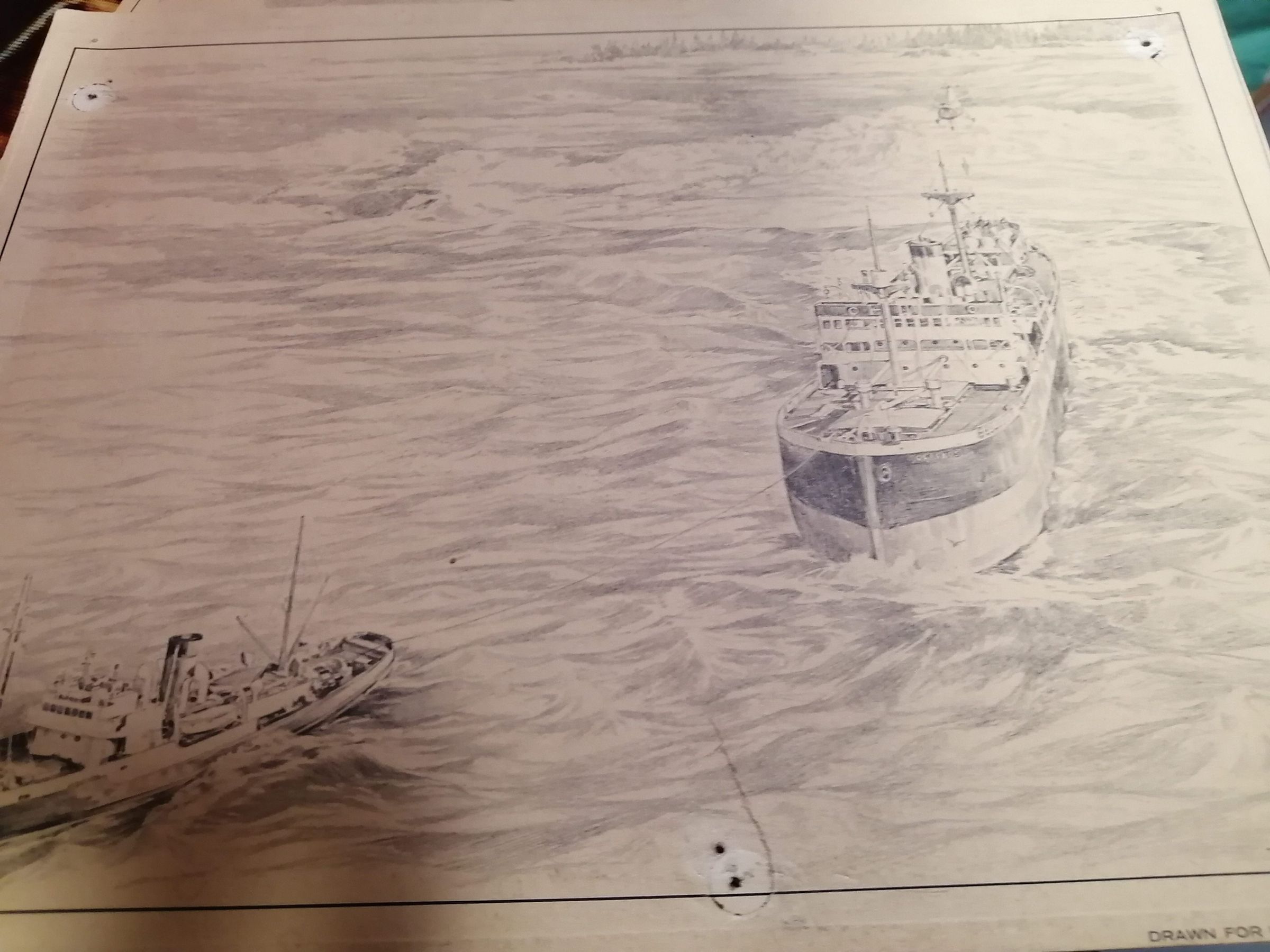 Drawing of two boats. Drawn for Island Tug and Barge Limited.