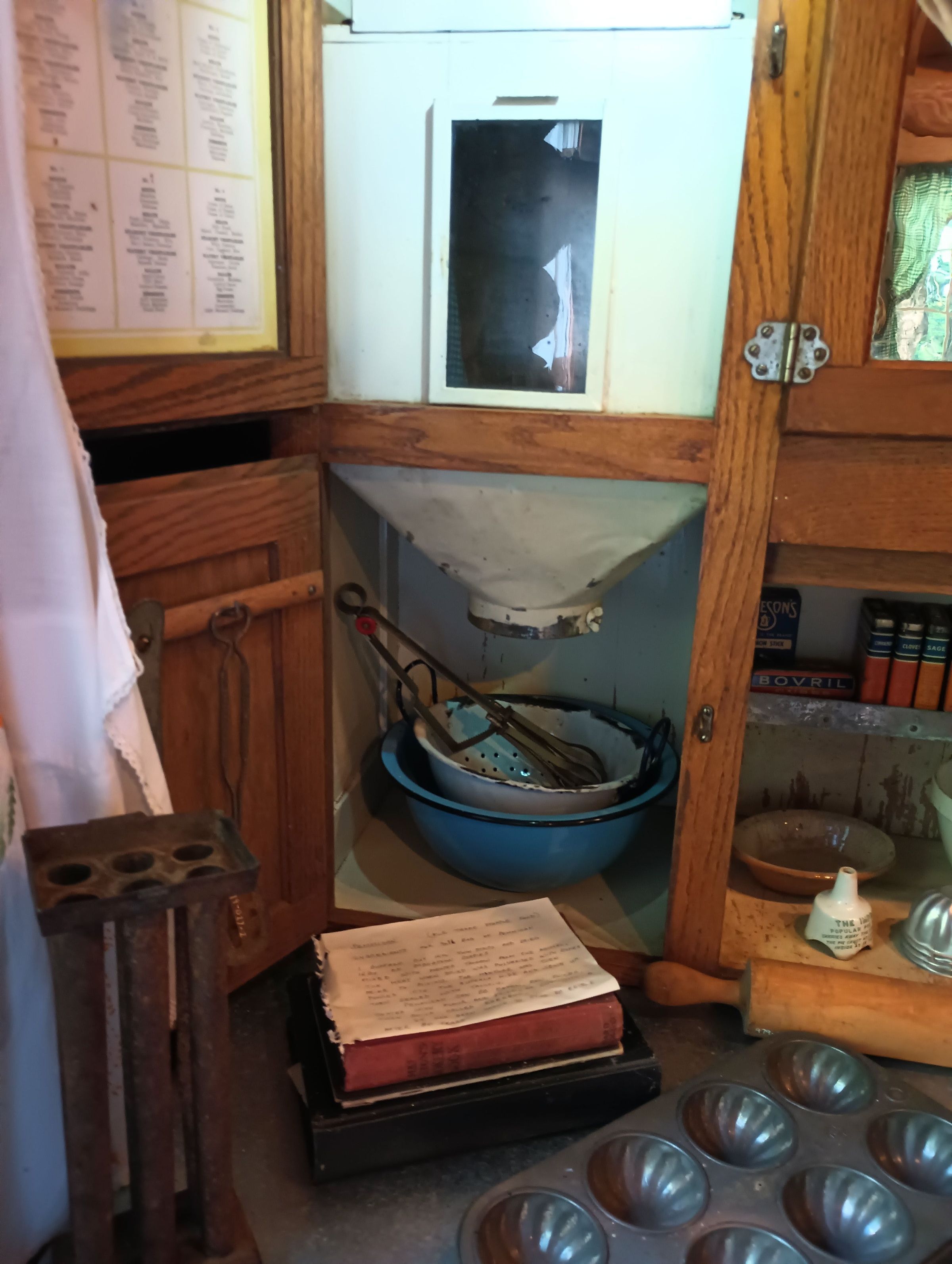 This type of free-standing kitchen cabinet also served as a workstation. It was popular between 1900-1930 when most houses did not have built in kitchen cabinetry.