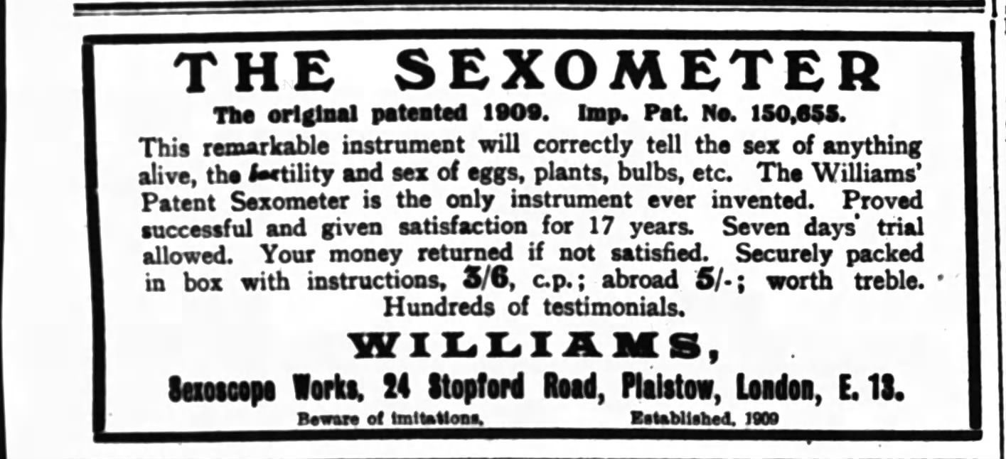 Falsely promoted as a device to determine whether or not an egg is fertilized, and is a male or female embryo.Context