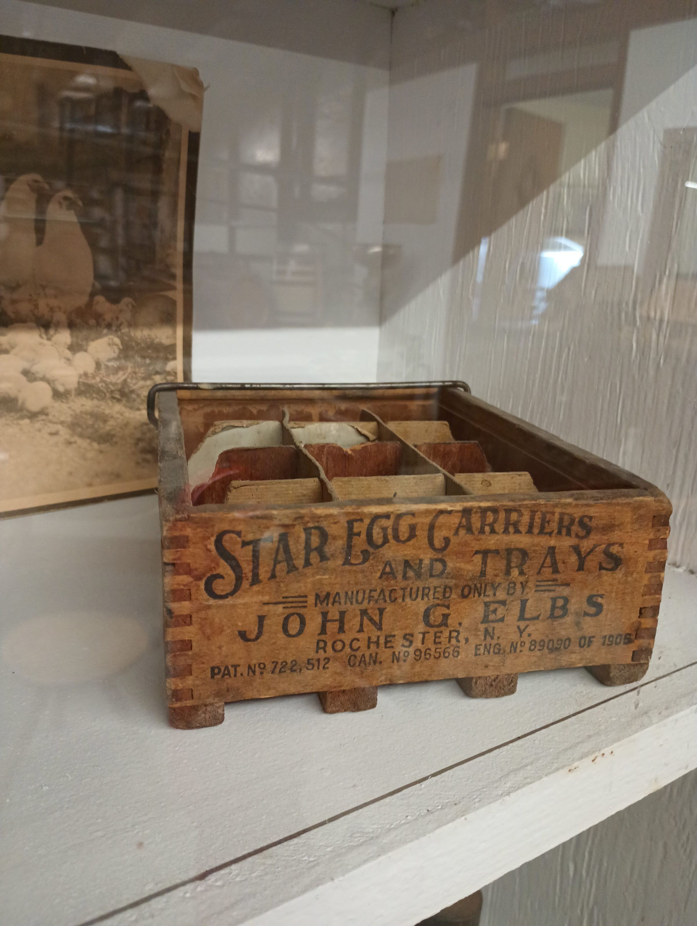 The Star Egg Carrier is a wooden dovetail crate manufactured by John G. Elbs, Rochester New York.