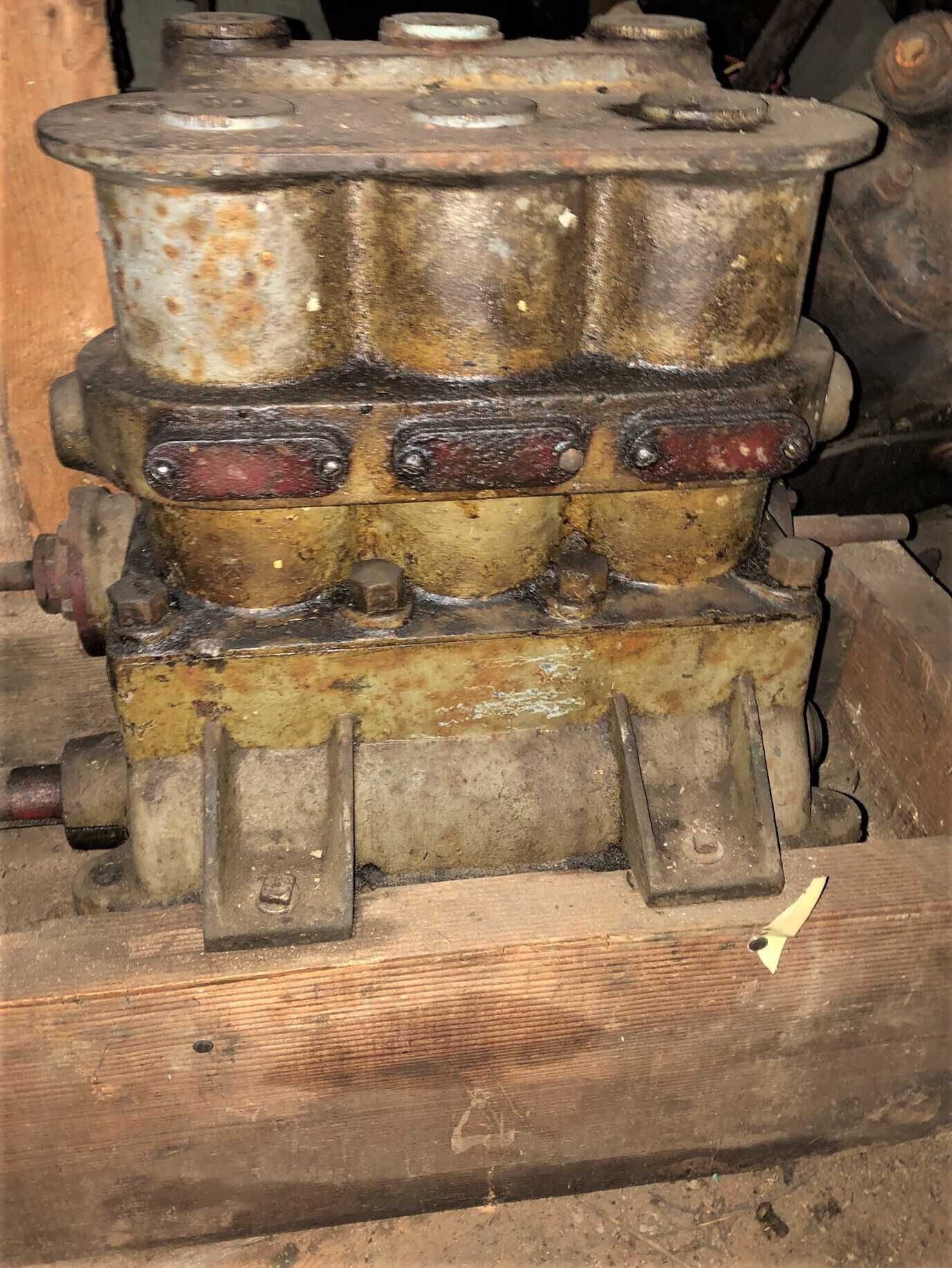 Deiter twin cylinder uniflow marine steam engine, unrestored. From Stan MacIntyre. Possibly off a Kooteney lake fast launch vessel.