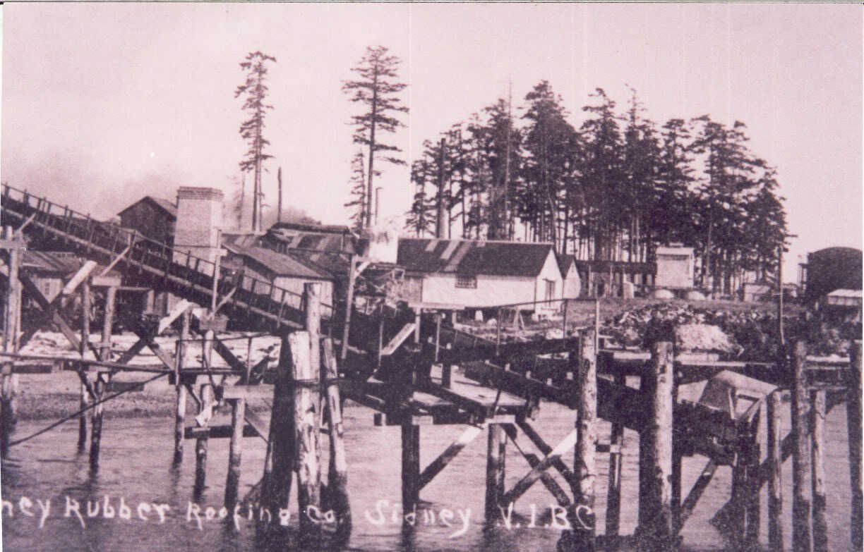 One hundred years ago Sidney literally became a household name in Western Canada when the Sidney Rubber and Roofing Company began producing quality rubberised roofing felt and asphalt roofing paper. With a high demand for roofing materials in the Greater Victoria area, a small group of men found support in organising and incorporating the Sidney Rubber and Roofing Company, Ltd., on October 23, 1912. Known also as the Royal Rubber & Roofing Company during its first few months of existence, the company quickly purchased 4 acres of land along the seashore spanning from Oakland Avenue (now Oakville) to Ocean Avenue, just north of the Anacortes Ferry.