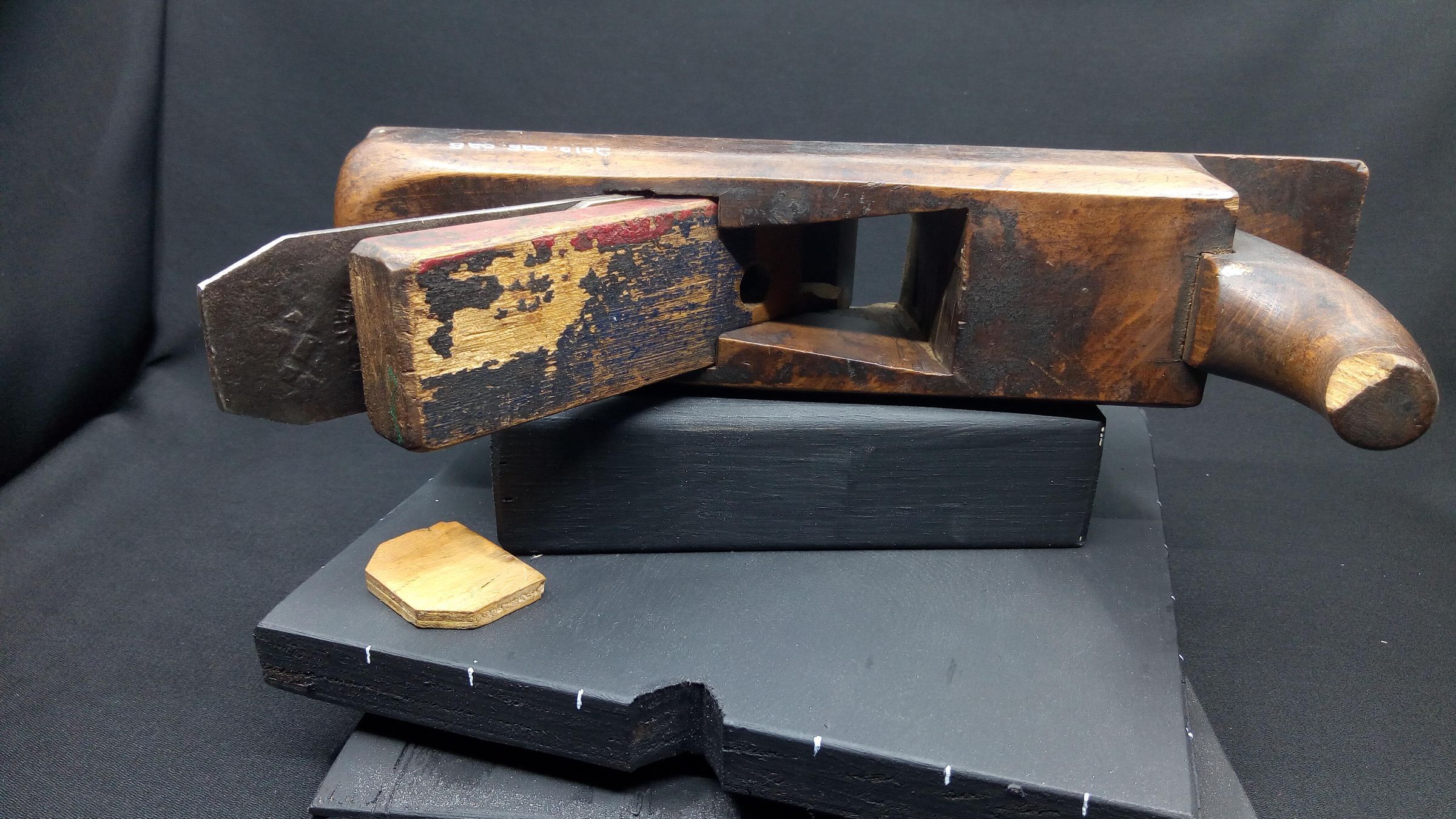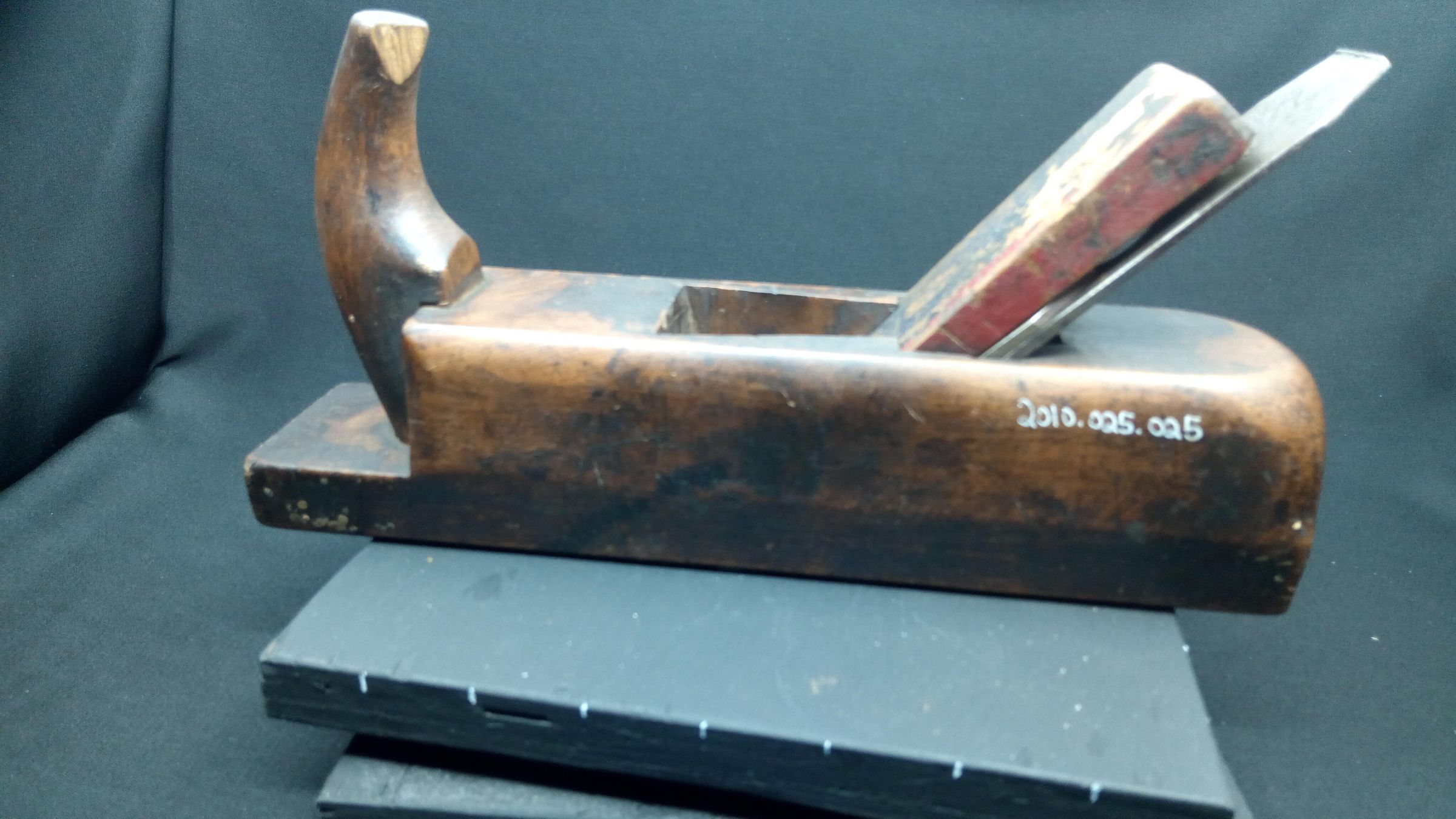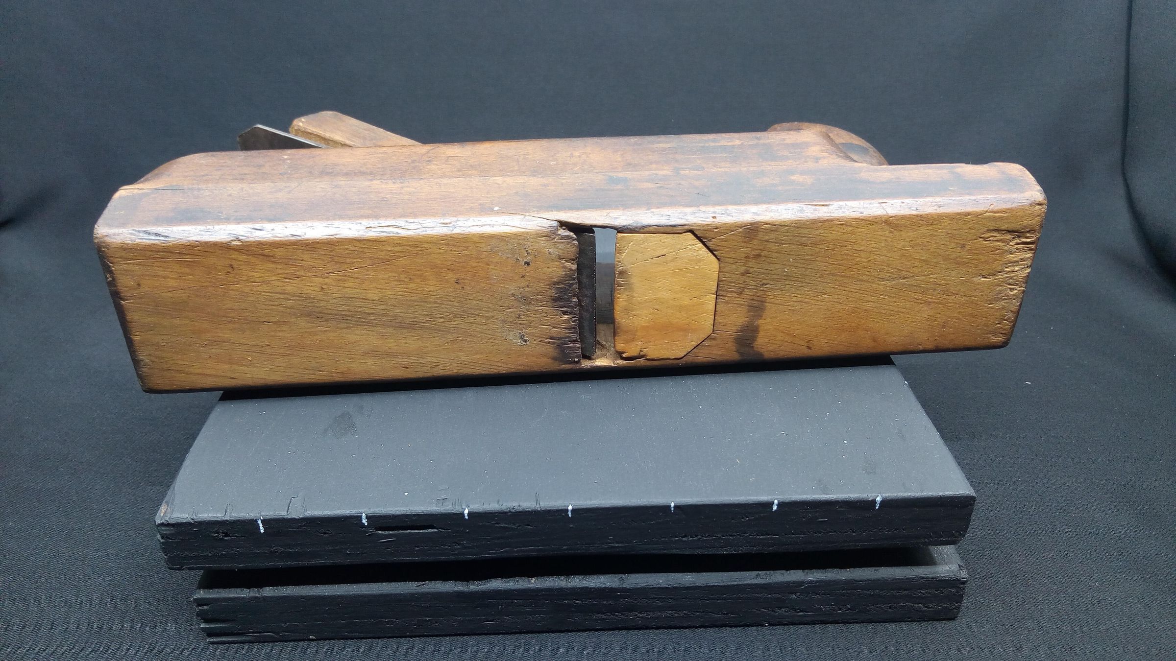 Originally, I believe that this was a scrub plane. That is that it had a blade sharpened to a convex shape to take a thick centred shaving, commonly at a diagonal to the grain, to remove the high points of a board quickly. I think that the boxwood insert for the mouth was an attempt to convert it to a close-mouthed smoothing plane. That would have the blade sharpened close to straight to take thin shavings in final finishing of the board.Context