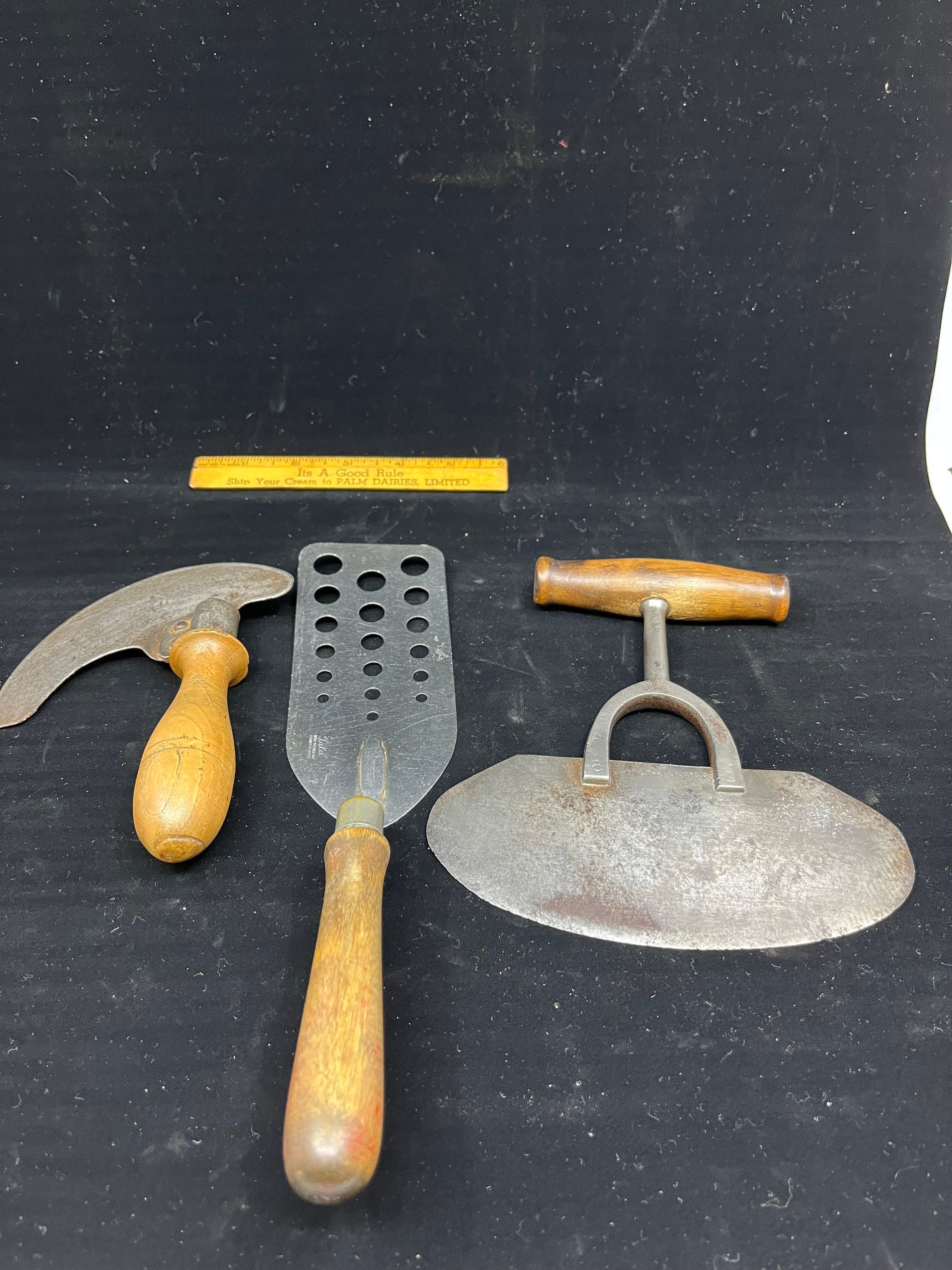 Small flensing tools with wooden handles and iron blades
