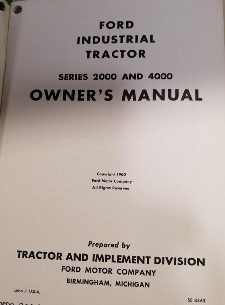 Ford industrial tractor. Series 2000 and 4000. Owner's manual.