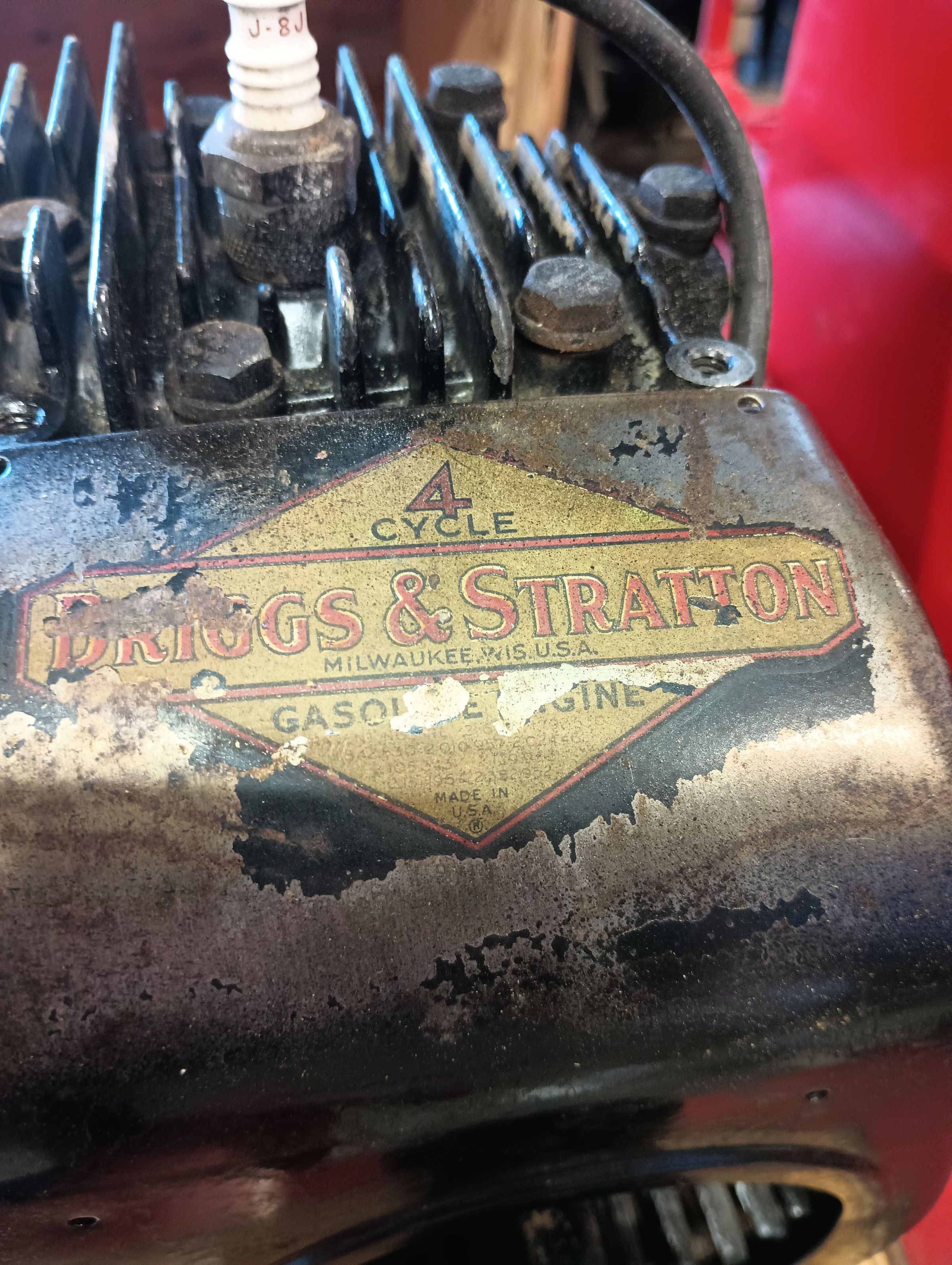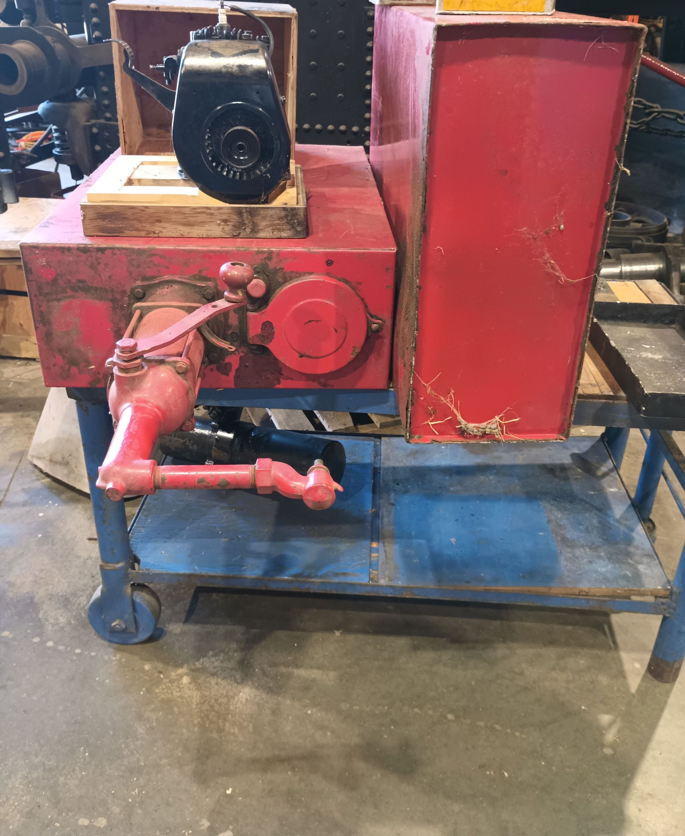 Garage oil dispenser or lubester with Briggs and Stratton 4 stroke engine.