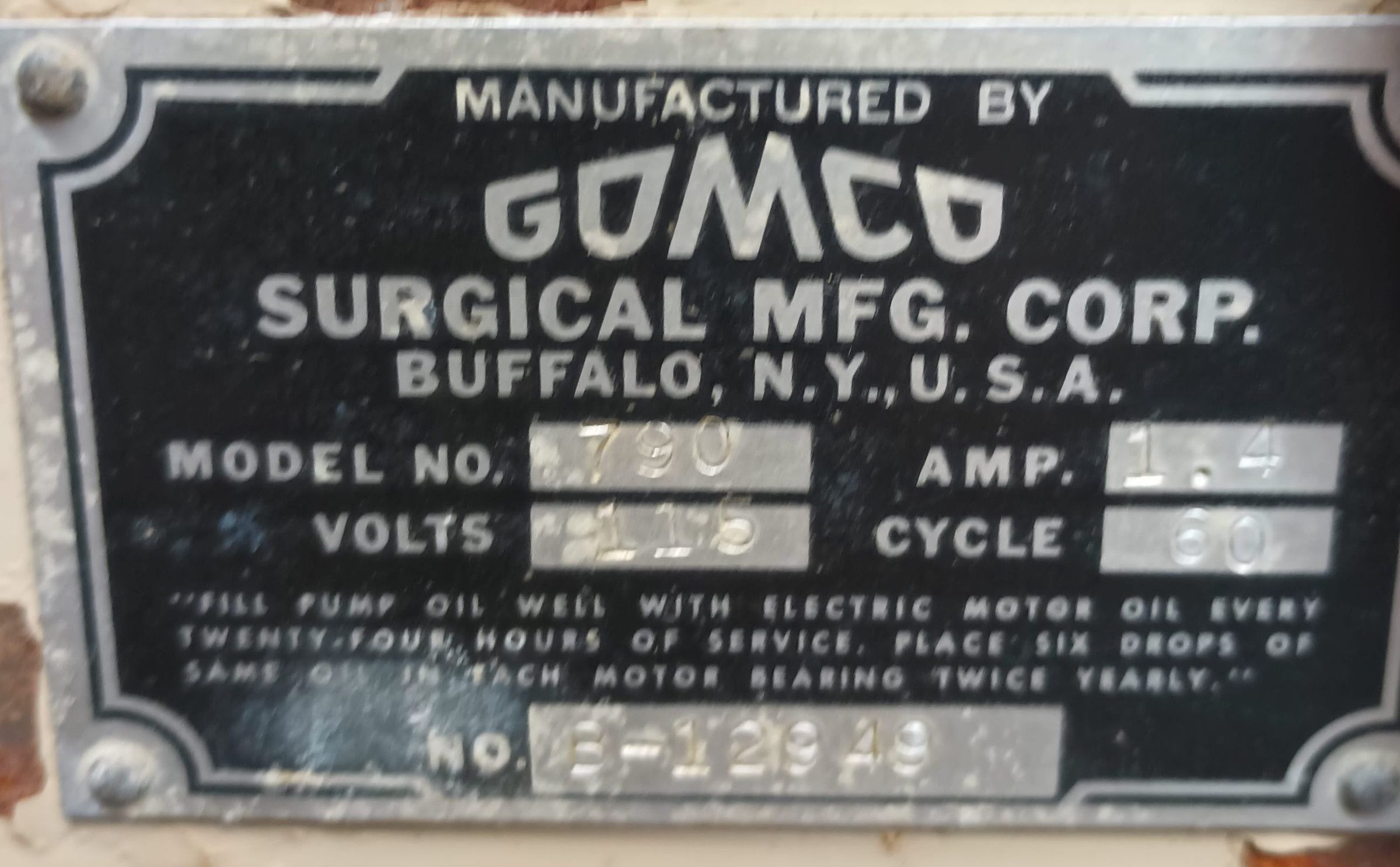 Gomco Model #790 Medical Grade Surgical Suction Vacuum Pump With Motor On Mobile Rolling Stand.
