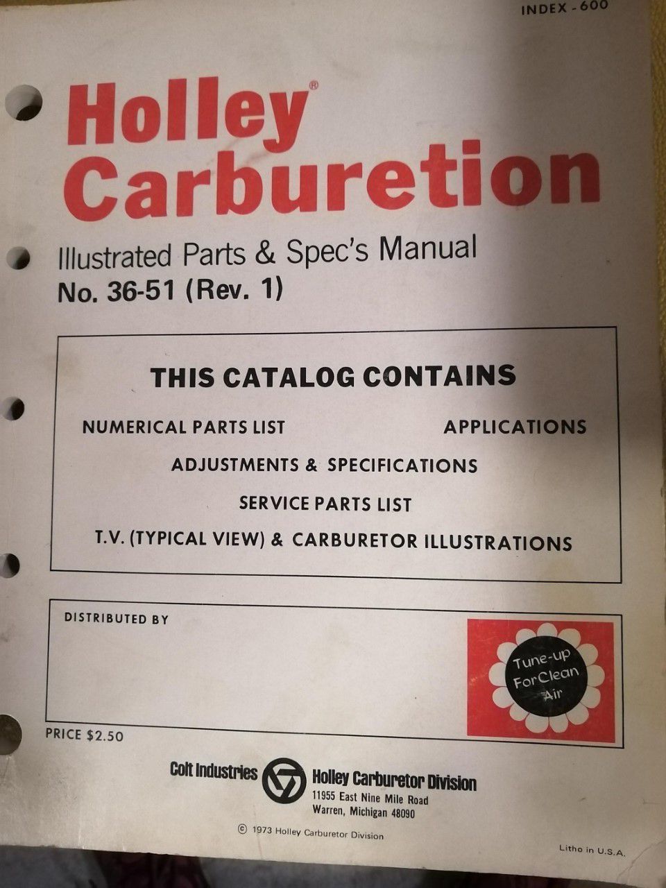 Holley carburetion. Illustrated parts and spec's manual. No 36-51. {Rev. 1)