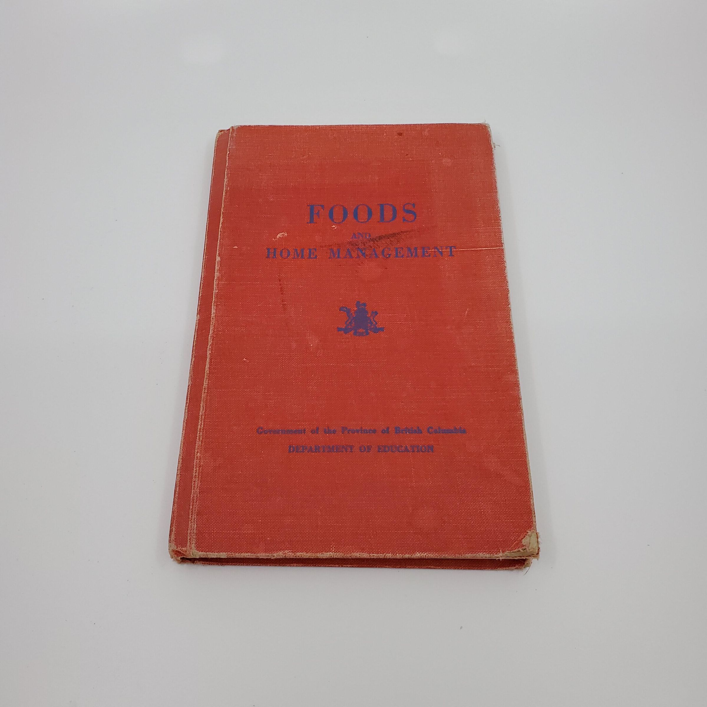 Foods and Home Management, Hardcover; red with blue printing; some black and white illustrations; 206 pages