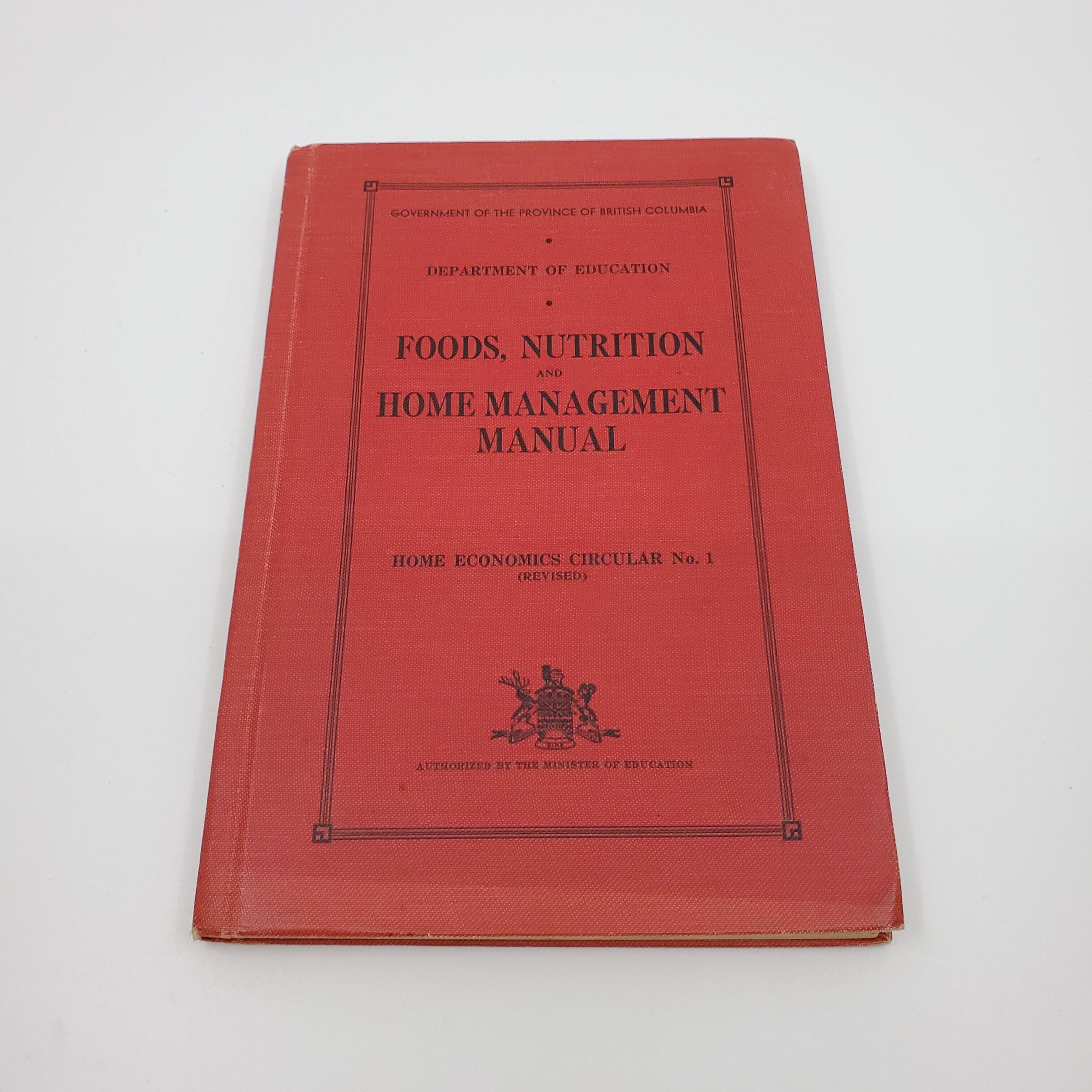 Foods, Nutritions and Home Mangement Manual; Hardcover; red with black printing; some black and white illustrations; 177 pages