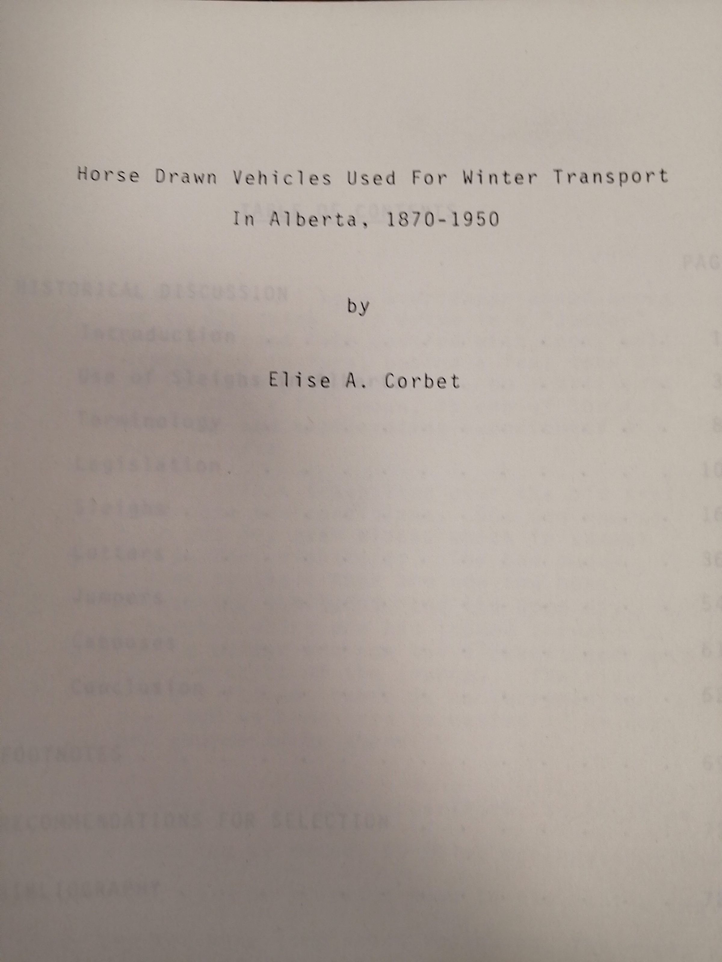 Horse drawn vehicles used for winter transport in Alberta, 1870-1950