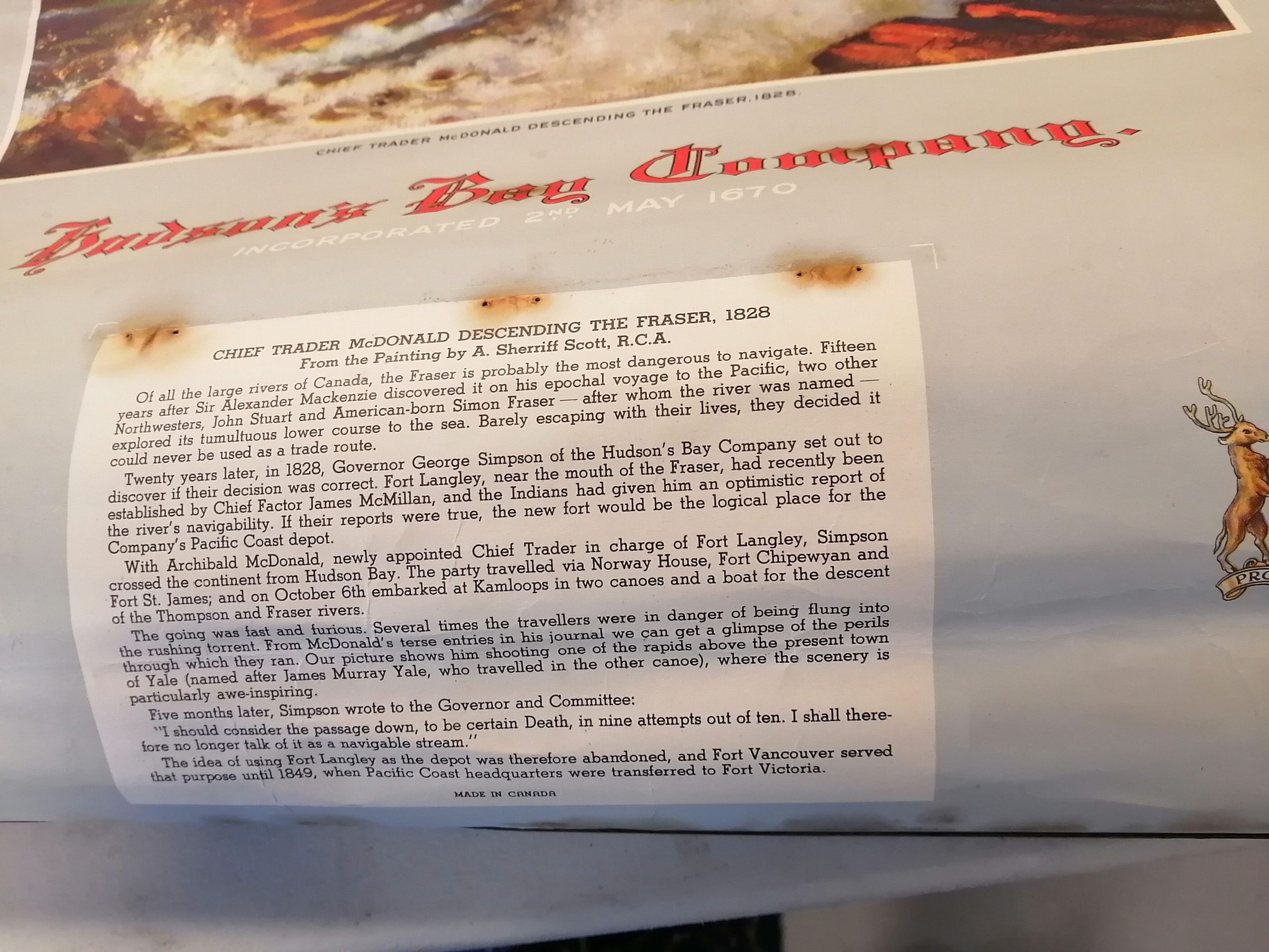 Hudson Bay Company. Chief trader McDonald descending the Fraser, 1828. Poster