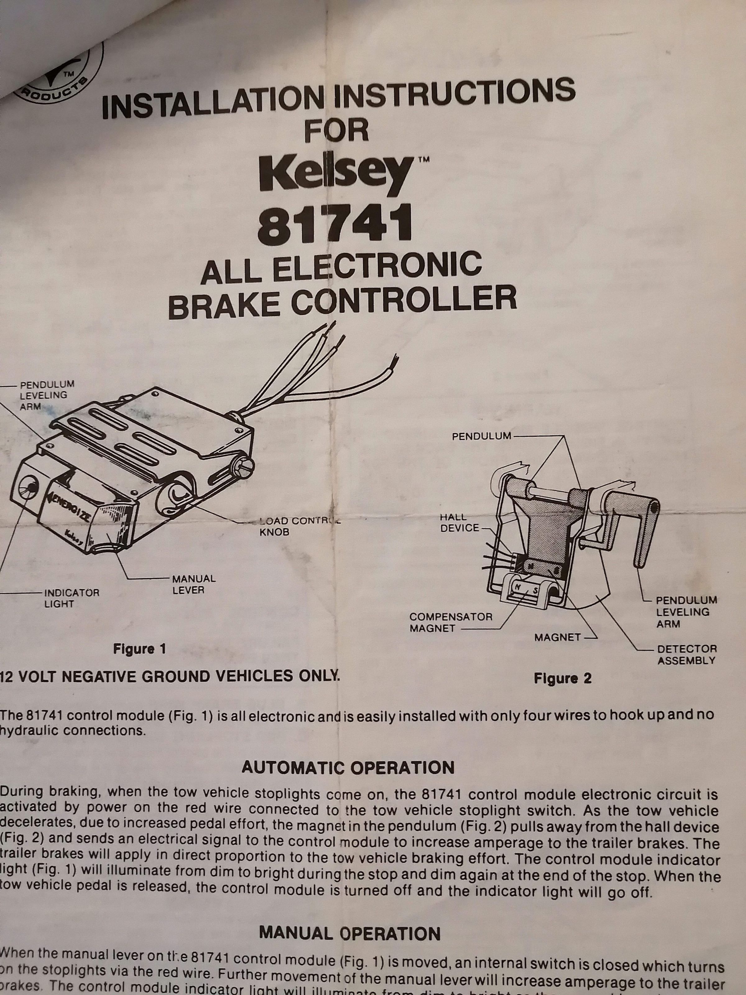 Installation instructions for Kelsey 81741 all electronic brake controller