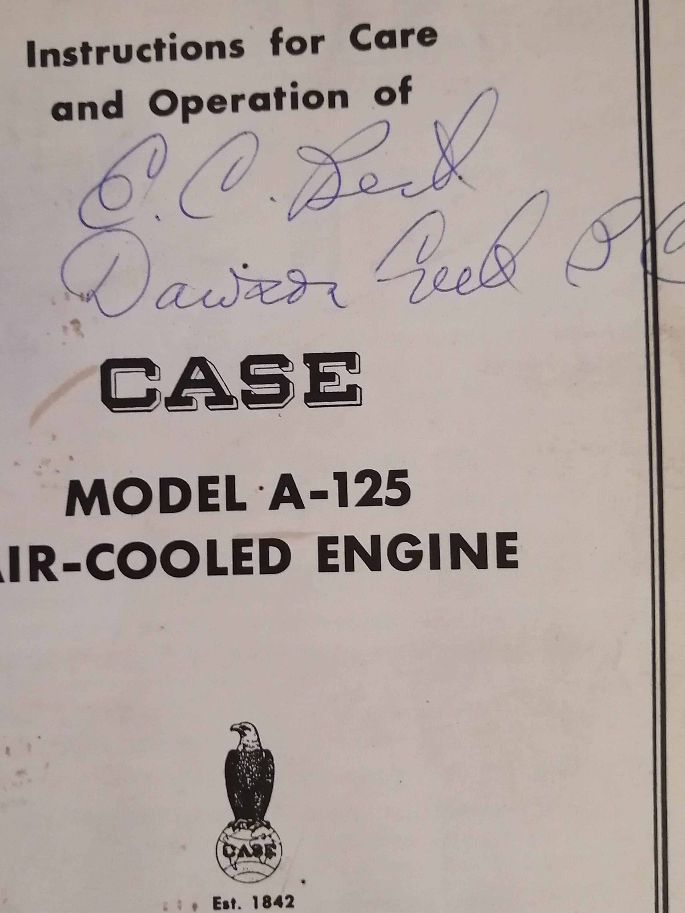 Instructions for care and operation of Case model A-125 air-cooled engines