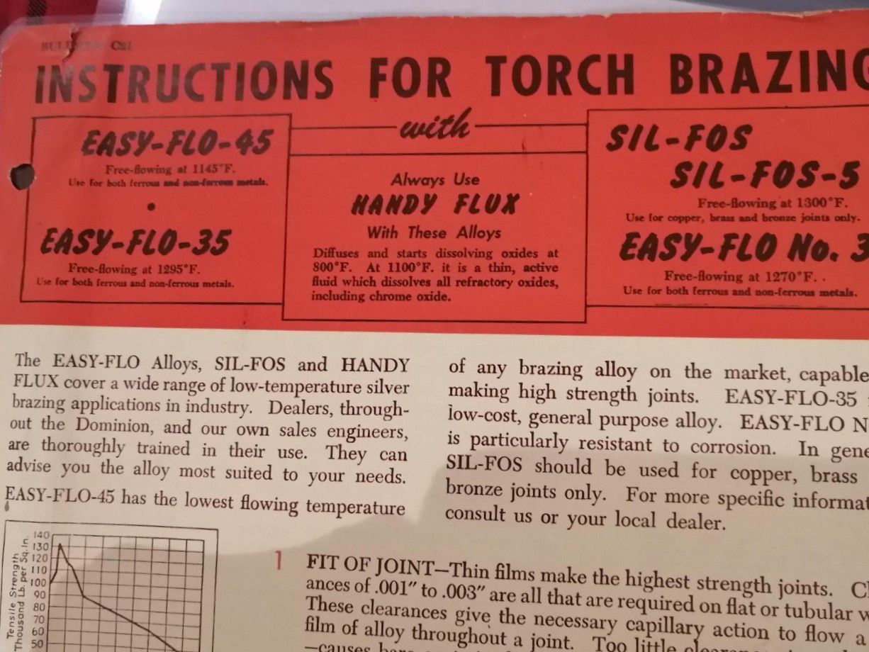 Instructions for torch brazing with Easy-Flo-45, Easy-Flow 35, Handy Flux, Sil-Fos, Sil-Fos-5 and Easy-Flo no. 3