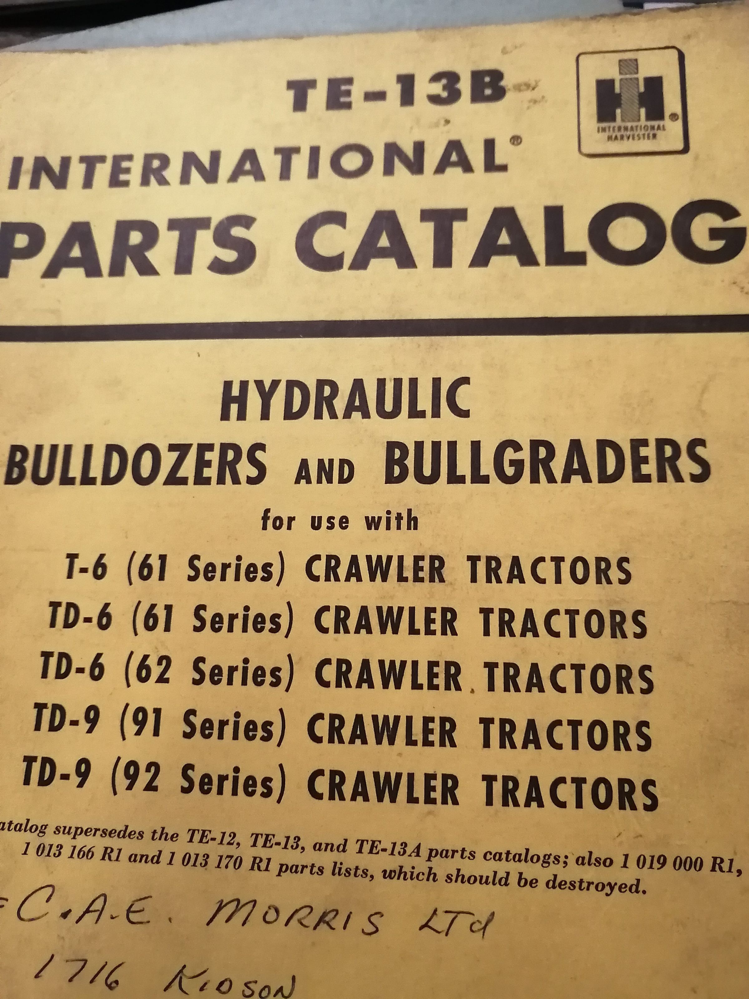 International parts catalog. Hydraulic bulldozers and bullgraders for use with T-6 (61 series), TD-6 (61 series), TD-6 (62 series), TD-9 (91 series), TD-9 (92 series)
