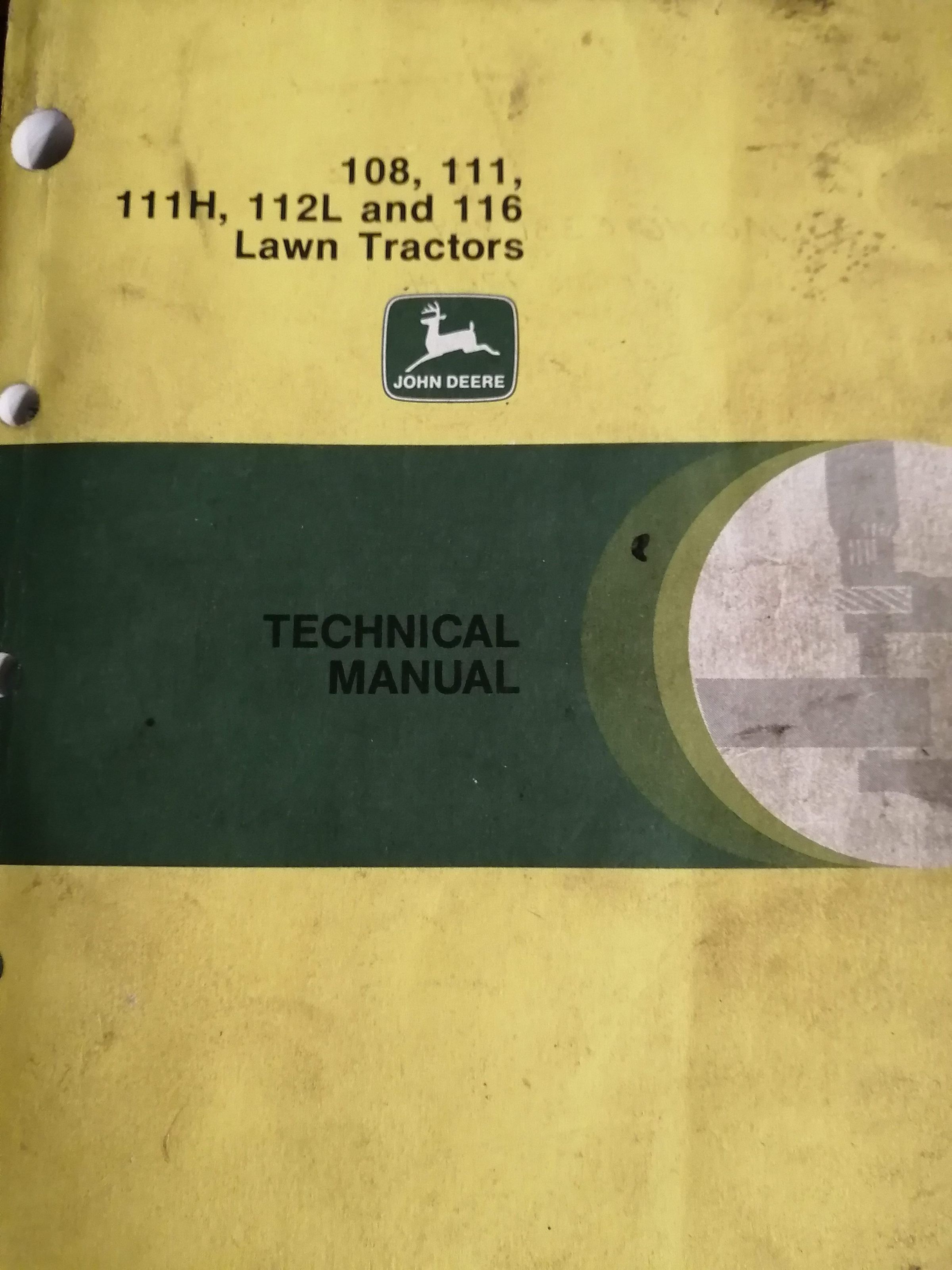 John Deere. 108, 111, 111H, 112L and 116 lawn tractors. Technical manual