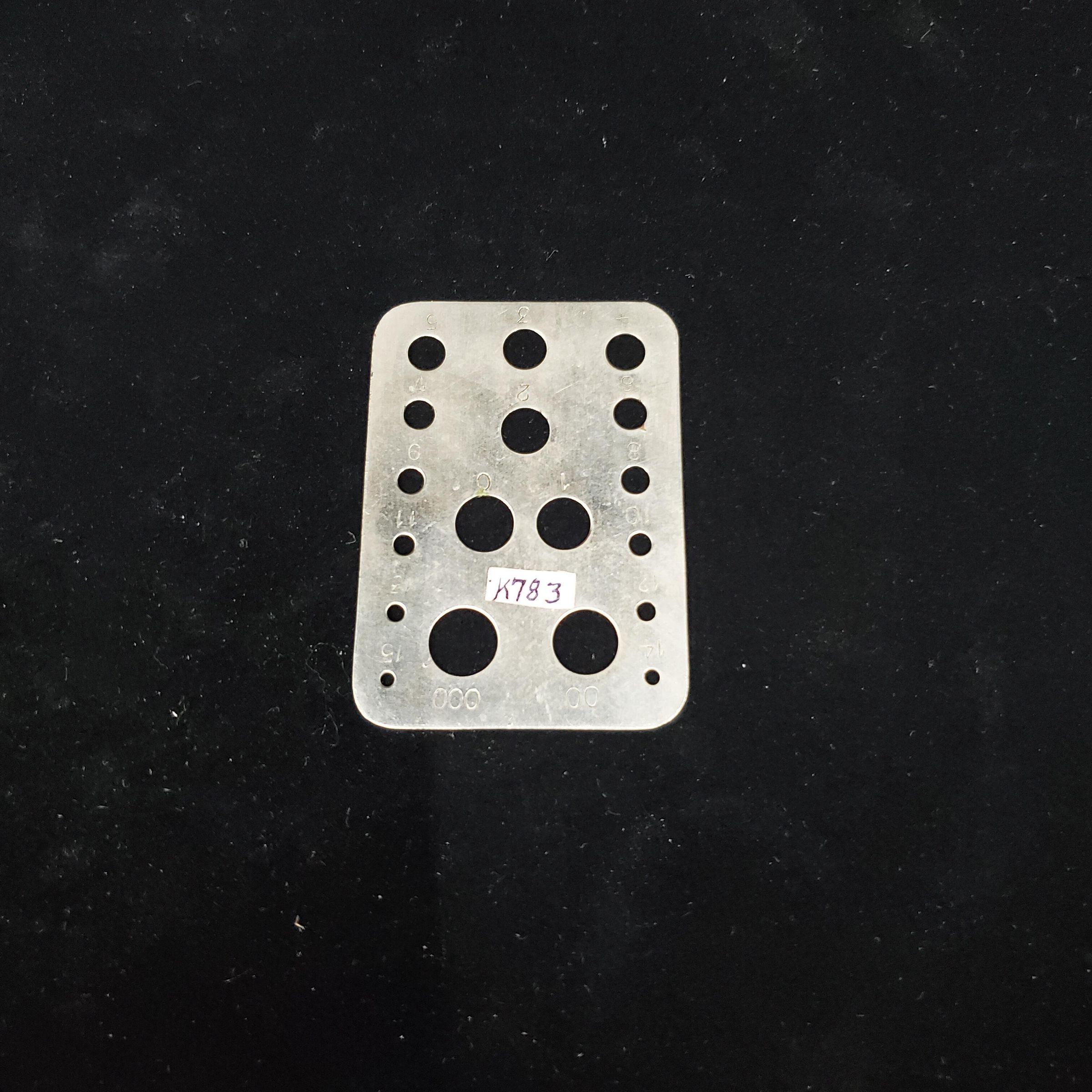 Steel rectangular knitting needle gauge. Hole type. English sizes No makers mark.